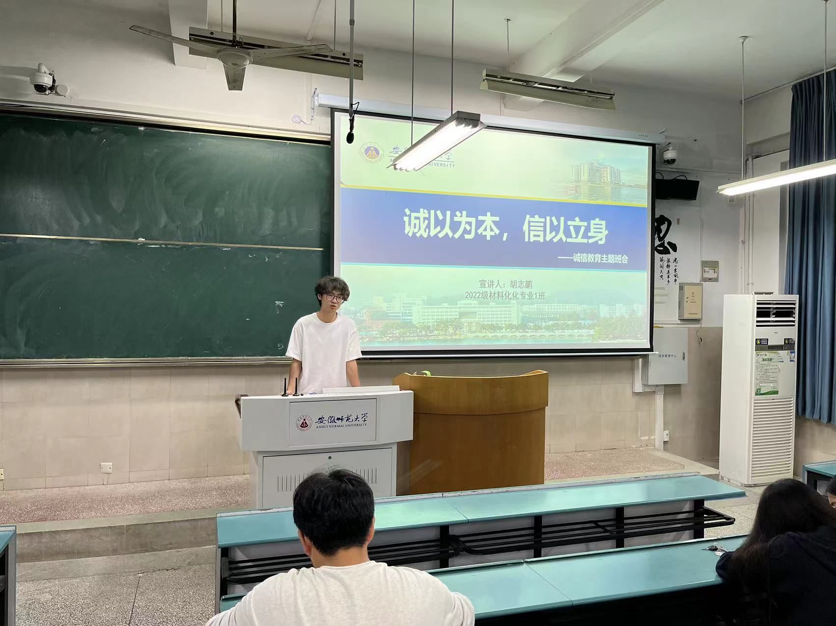 本网讯(英国正版365官方网站 李汝)5月29日下午,英国正版365官方网站2022级材料化学1班、2班在2020101和2020102召开了“诚以为本,信以立身”主题班会,会议由1班班长胡志鹏和2班团支书许一鸣主讲,全体2022级材料化学专业本科生参加。