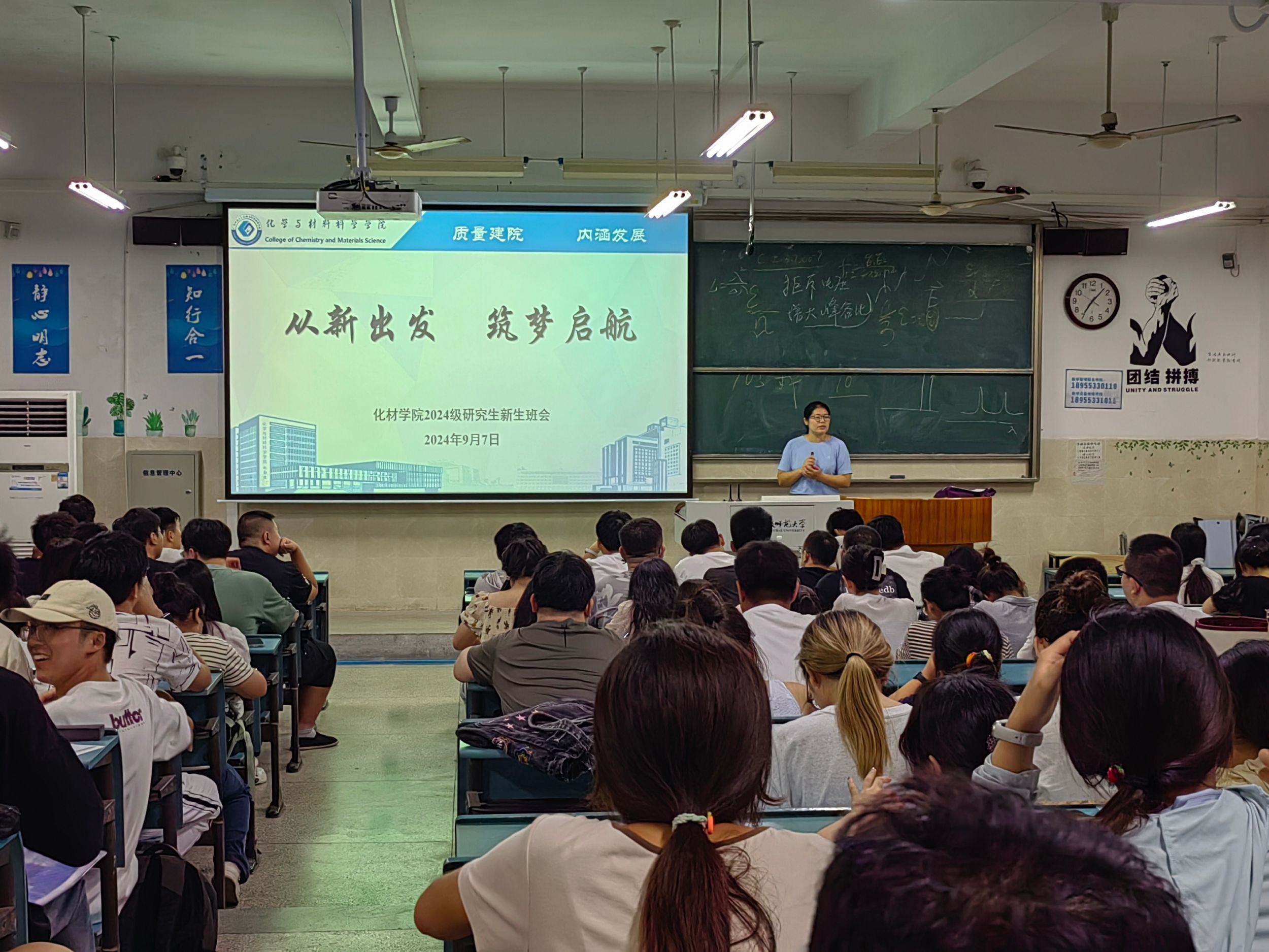本网讯(英国正版365官方网站)为帮助研究生新生熟悉公司并尽快适应科研学习节奏,9月7日晚,辅导员宋晓晓于行知楼2号楼205教室为召开了题为“从新出发、筑梦启航”的主题班会,2024级材料、化工、学科教学化学以及生物与医药全体研究生参加。