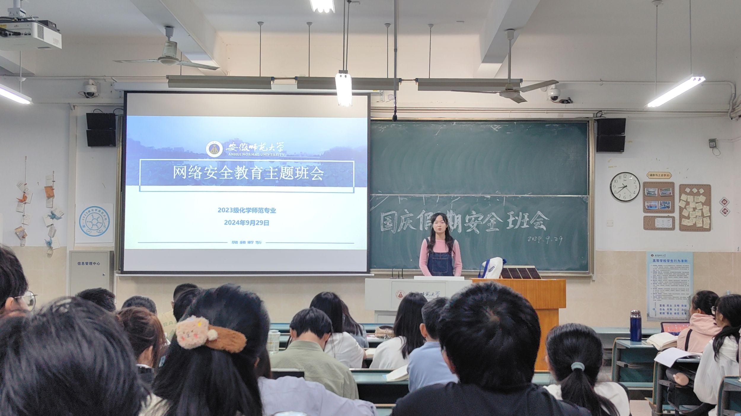 本网讯(英国正版365官方网站 段雨含)为了积极响应国家关于加强网络安全教育的号召,提升个人网络安全意识和防护能力,促进社会网络安全环境建设,维护国家安全和社会稳定,9月29日晚上,2023级化学师范专业各班级于行知楼各教室开展了网络安全教育主题班会,全体员工参加。