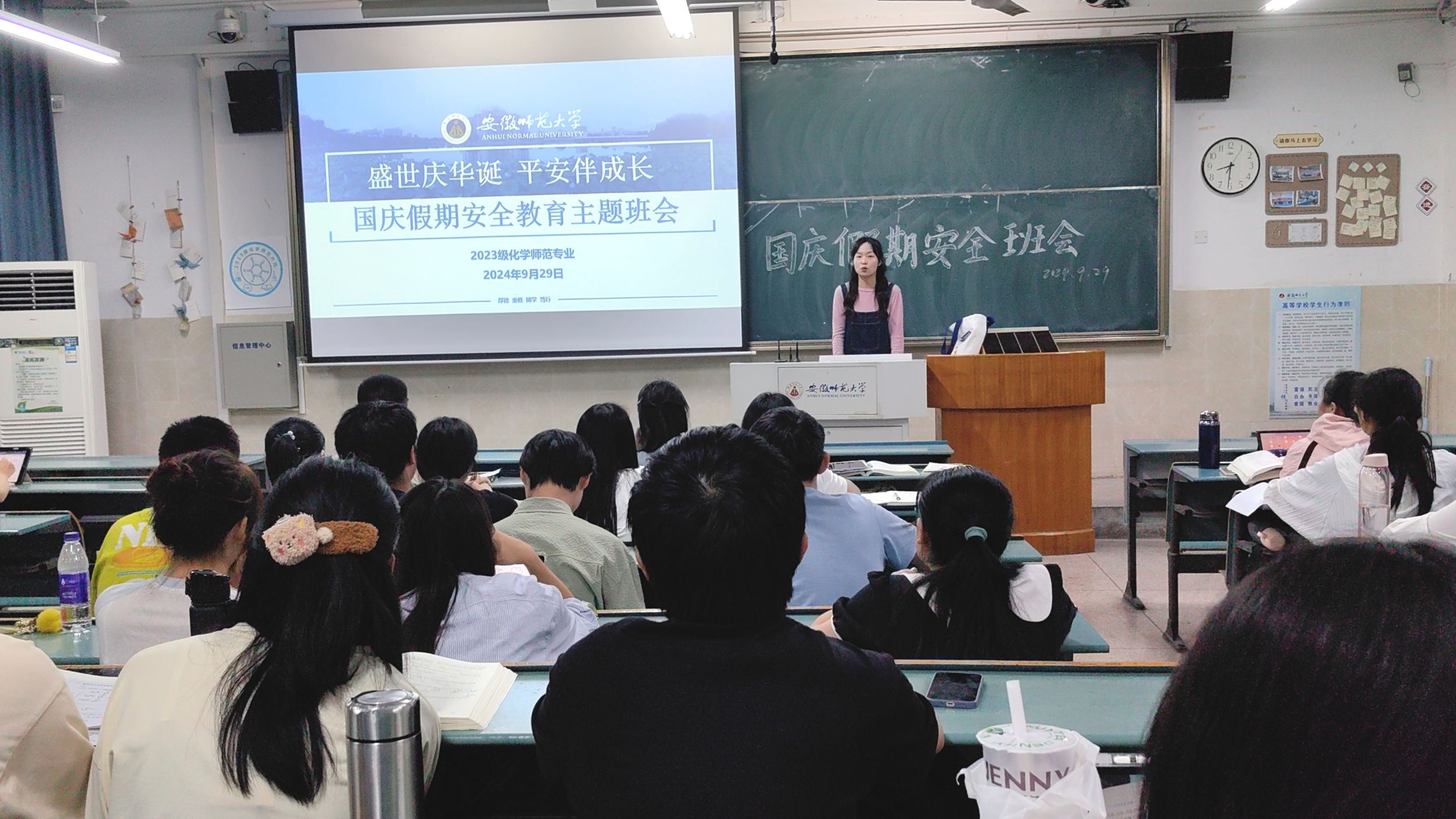 本网讯(英国正版365官方网站 丁丽)为加强员工国庆假期安全意识,9月29日晚,2023级化学师范专业各班级于行知楼各教室分班级开展了国庆安全主题教育会议,全体员工参加。