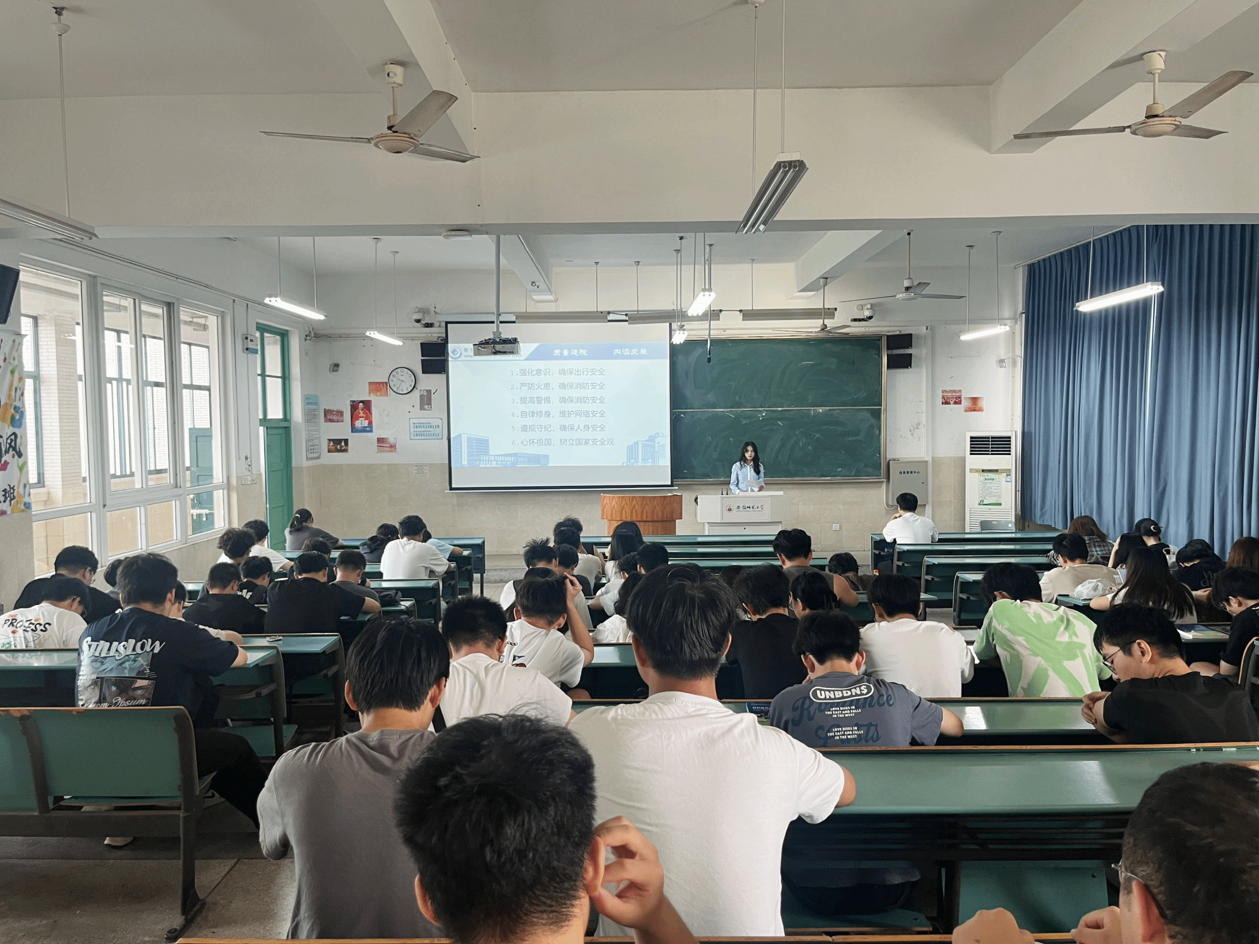 李汝老师围绕六方面内容讲述国庆假期的安全问题。第一,强化意识,确保出行安全。在交通安全方面,提醒同学们从正规渠道购买出行、返校车票,遵守交通安全法规并严防自然灾害。第二,严防火患,确保消防安全。李老师提醒大家要遵守公寓管理规定,严禁在宿舍内存放和使用违禁电器,不私拉乱接电线等,此外,叮嘱同学们要遵守实验室安全管理规定。第三,提高警惕,确保财产安全。李老师指出,要谨防电信网络诈骗,避免陷入不良网贷,提升识骗和防骗能力。第四,自律修身,维护网络安全。要坚守网络道德与秩序,遵守网络管理法律法规,自觉营造清朗健康的网络环境。第五,遵规守纪,确保人身安全。李老师告诫员工要防范溺水事故,做到“六不一会”,遵守离返校登记与线上线下晚点名制度,并养成良好的生活习惯和健康的生活方式,以良好的精神状态投入节后正常的学习生活。第六,心怀祖国,树立国家安全观。辅导员还就国家安全观进行了详细的讲解。讲述个人在维护国家安全中的责任与义务,鼓励员工树立远大理想,为实现中华民族伟大复兴的中国梦贡献自己的力量。