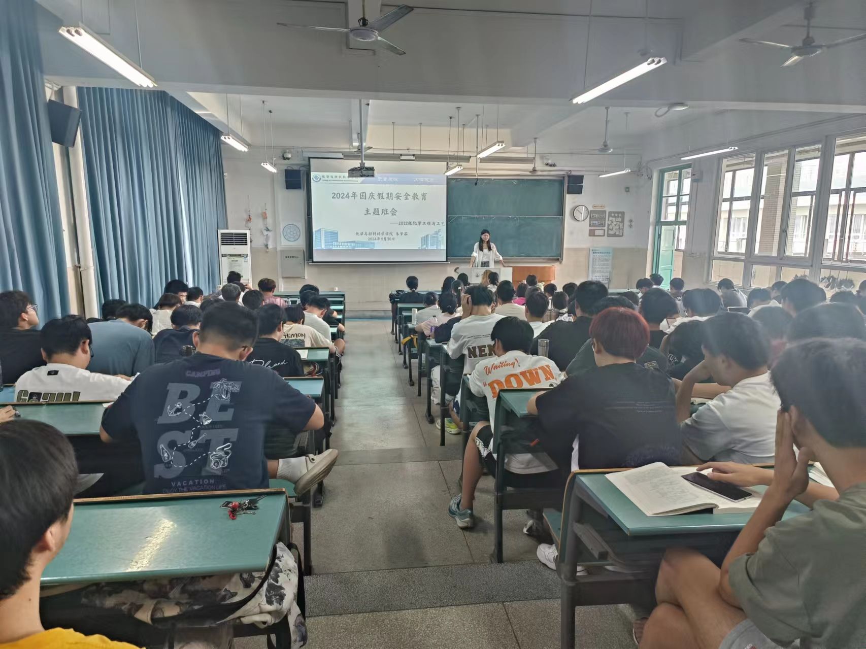 本网讯(英国正版365官方网站 郁妍)为了让全体员工都能过一个安全有意义的国庆假期,2024年9月30日,化学工程与工艺专业在一号楼604教室开展了国庆安全教育主题班会,本次班会的主持人为辅导员朱梦茹老师。