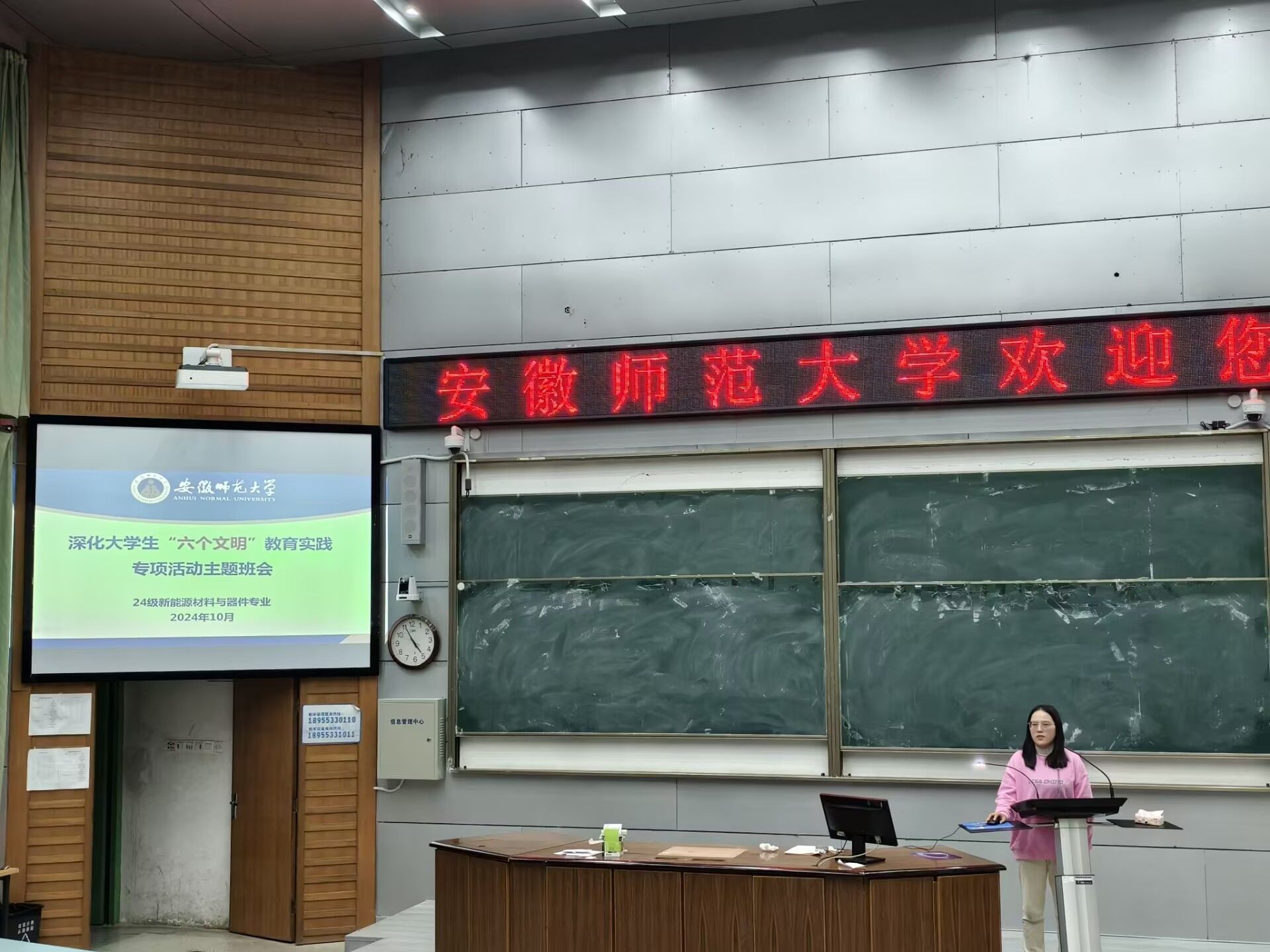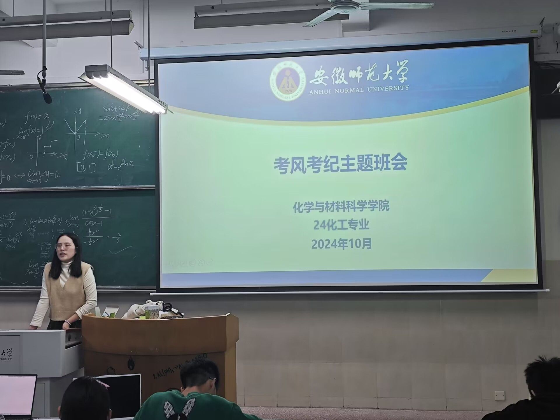 本网讯(英国正版365官方网站 吕欣晨) 为深入推进老员工护航行动计划,营造文明健康的校园育人氛围,营造良好学风班风,10月27、28日2024级应化、化工和新能源三个专业召开了"六个文明"教育实践专项活动暨考风考纪主题班会,主题班会由辅导员王芳老师主持。