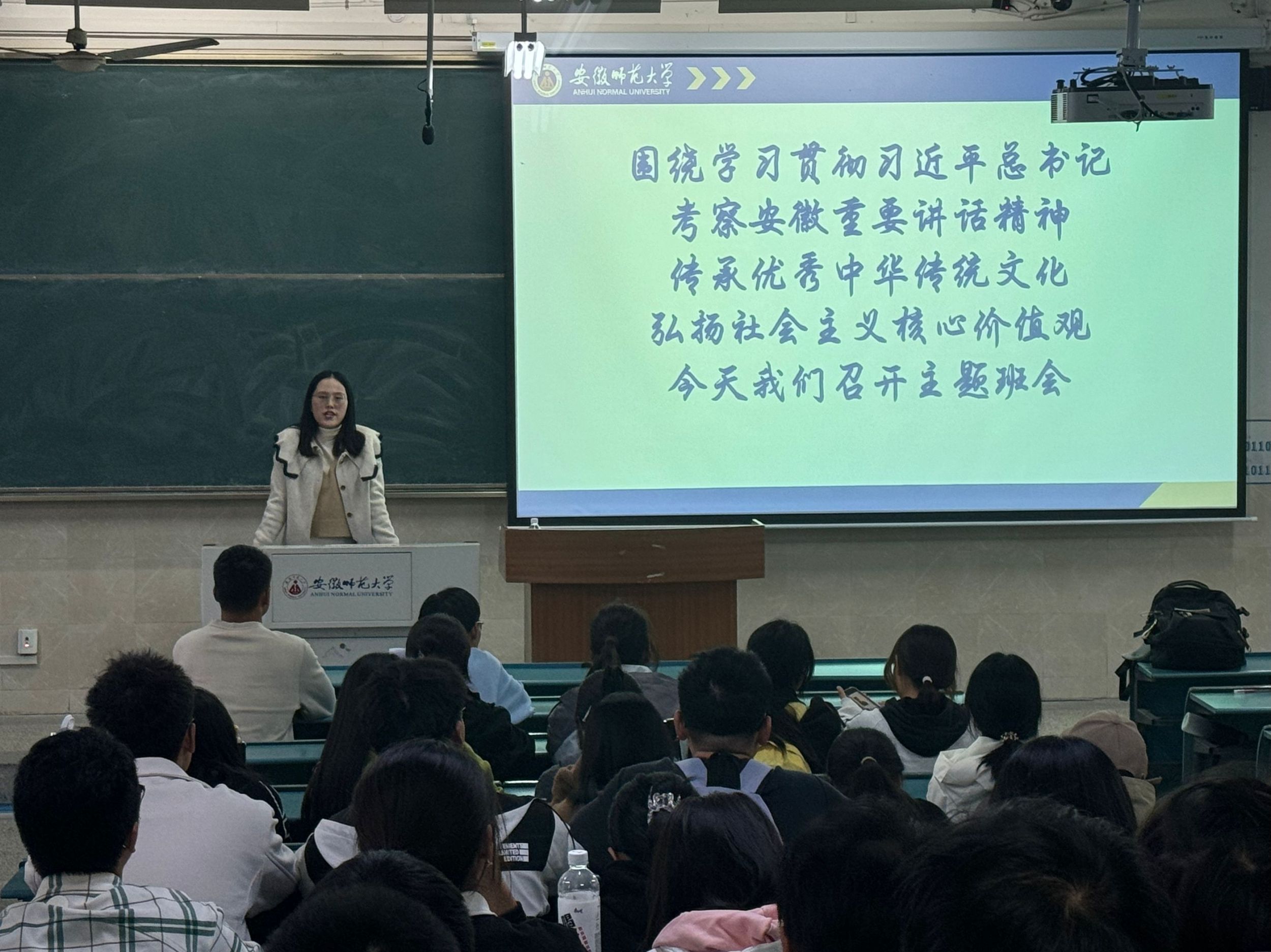 同学们一起观看了习近平总书记考察安徽新闻视频,王芳老师围绕习近平总书记在考察安徽时强调要在发展社会主义先进文化、弘扬革命文化、传承中华优秀传统文化上协同发力,打牢社会治理的文化根基的主题展开。引导同学们要牢记习近平总书记的嘱托,以高度的文化自信和文化自觉,积极传承和弘扬,让优秀传统文化在新时代老员工群体中焕发出新的生机与活力。我们每个人都是中华优秀传统文化的传承者和社会主义核心价值观的践行者,要以实际行动诠释和弘扬这些宝贵的精神财富,共同为建设一个更加繁荣、文明、和谐的社会而努力奋斗。