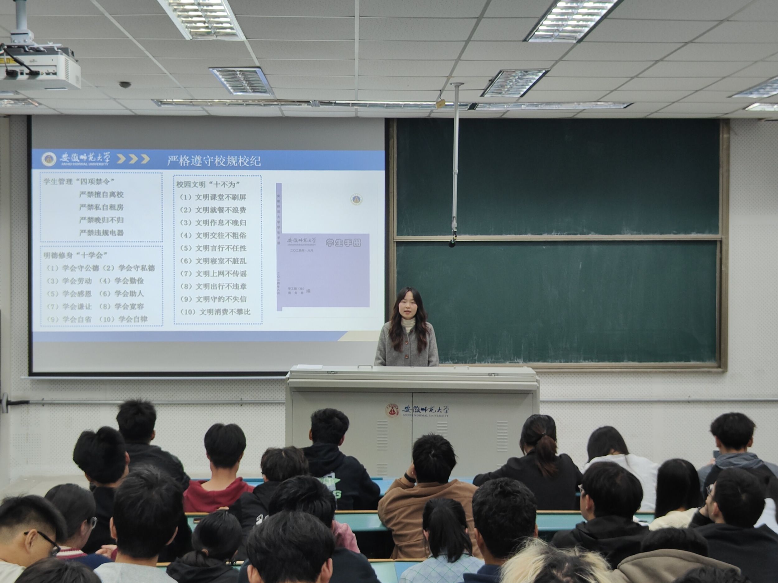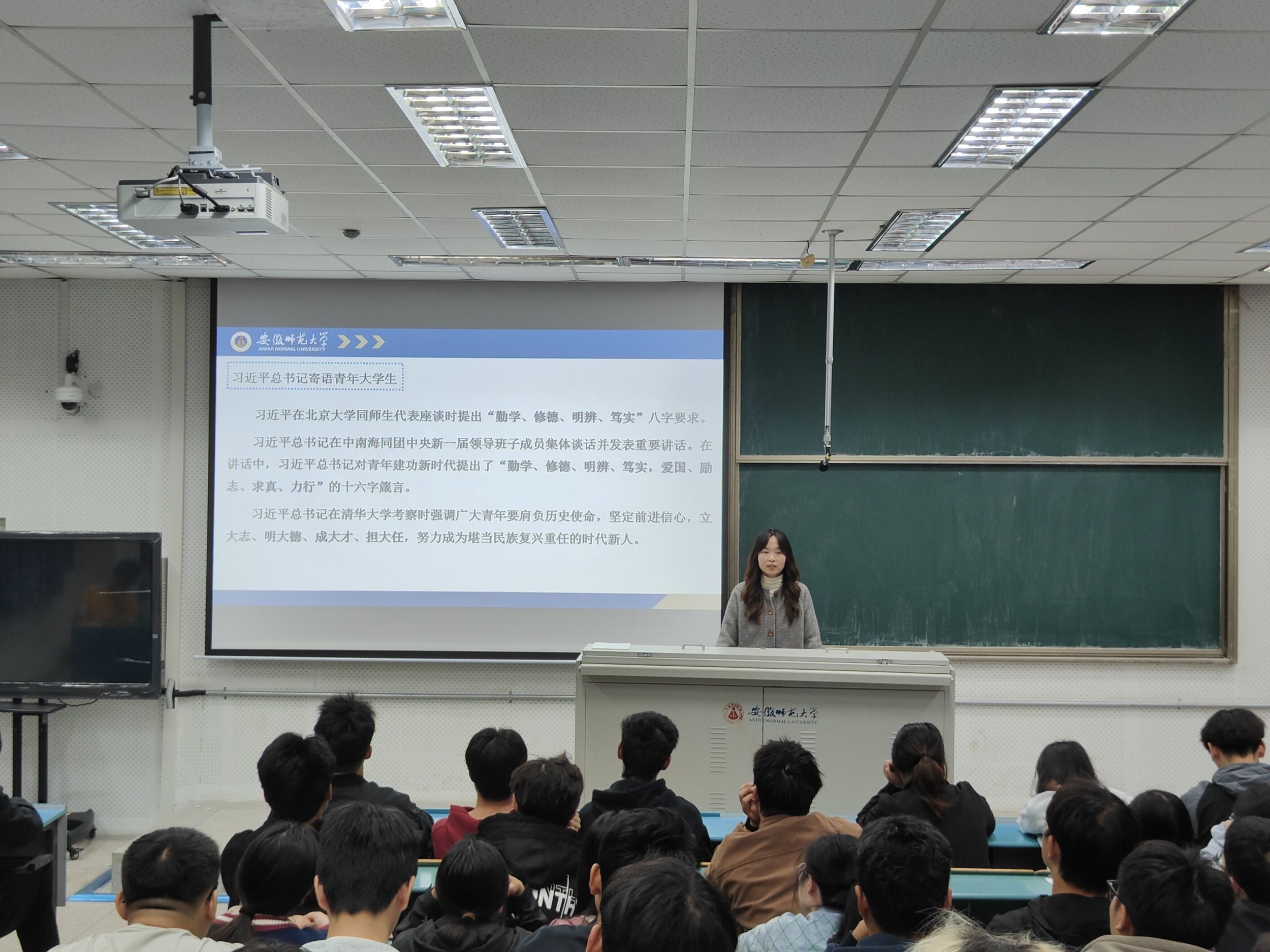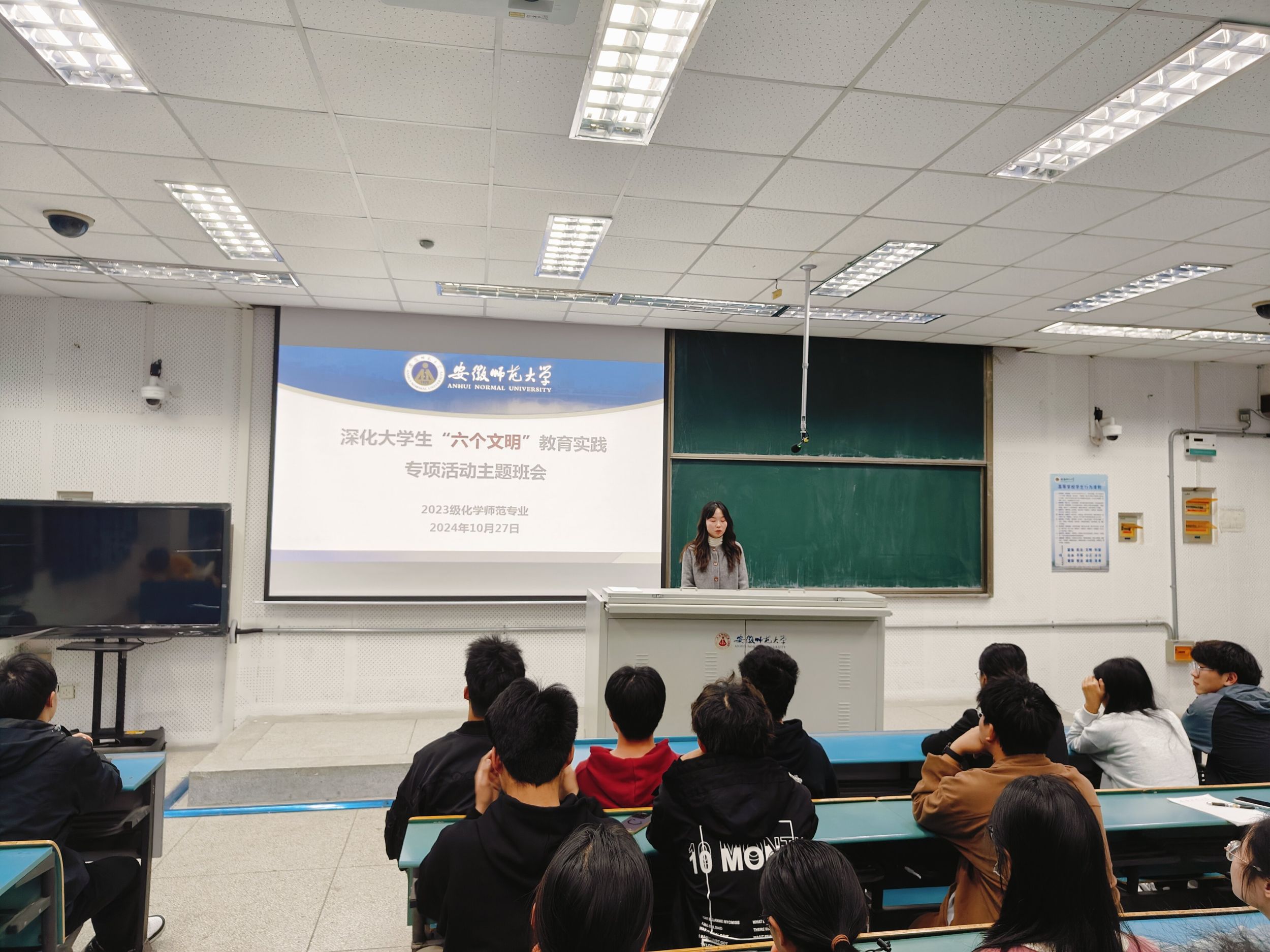 辅导员王霞强调,同学们要深刻理解习近平总书记的重要讲话精神、树立正确的价值观和远大的理想,在校园中保持文明行为,打造文明的学习生活环境,不断提升自己的综合素质,为将来投身安徽建设做好充分准备。