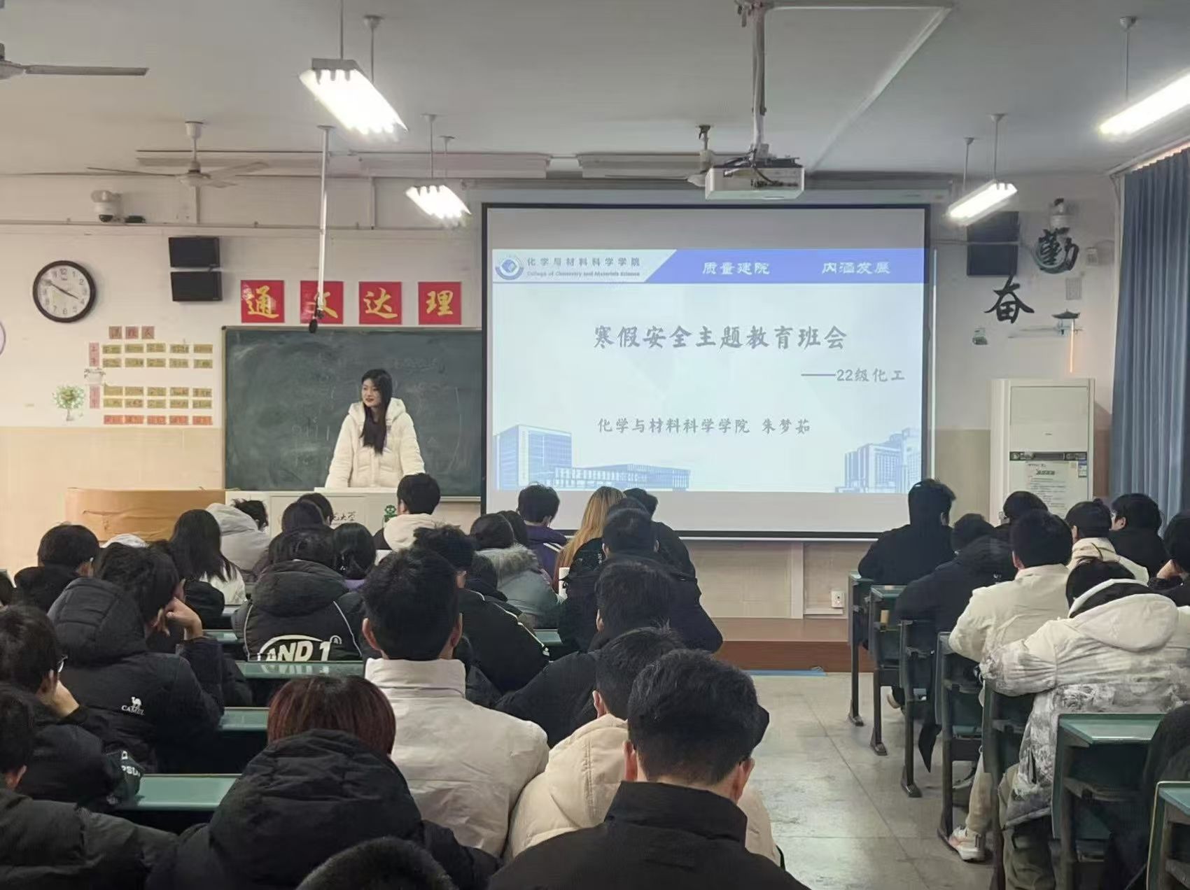 本网讯(英国正版365官方网站 郁妍)为了确保广老员工能够度过一个平安、愉快的寒假,2025年1月5日,化学工程与工艺专业在一号楼605教室开展了以“提升安全意识,共筑平安寒假”为主题的安全教育班会。本次班会旨在通过多方面介绍和提醒,增强员工的安全防范意识,普及安全知识,确保每位同学都能平安度过寒假,本次班会主持人为辅导员朱梦茹老师。
