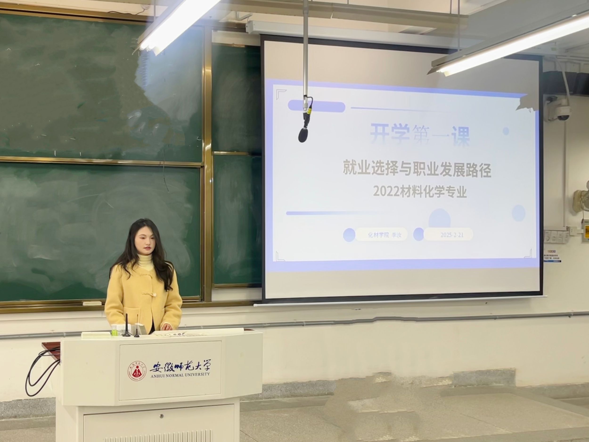 2025年2月21日上午,2022级材料化学专业在2070201教室召开了开学第一课——就业选择与职业发展路径主题班会。本次班会由辅导员李汝老师主持,旨在为同学们的未来发展提供清晰的规划与指导,助力同学们在人生的关键节点做出明智选择。