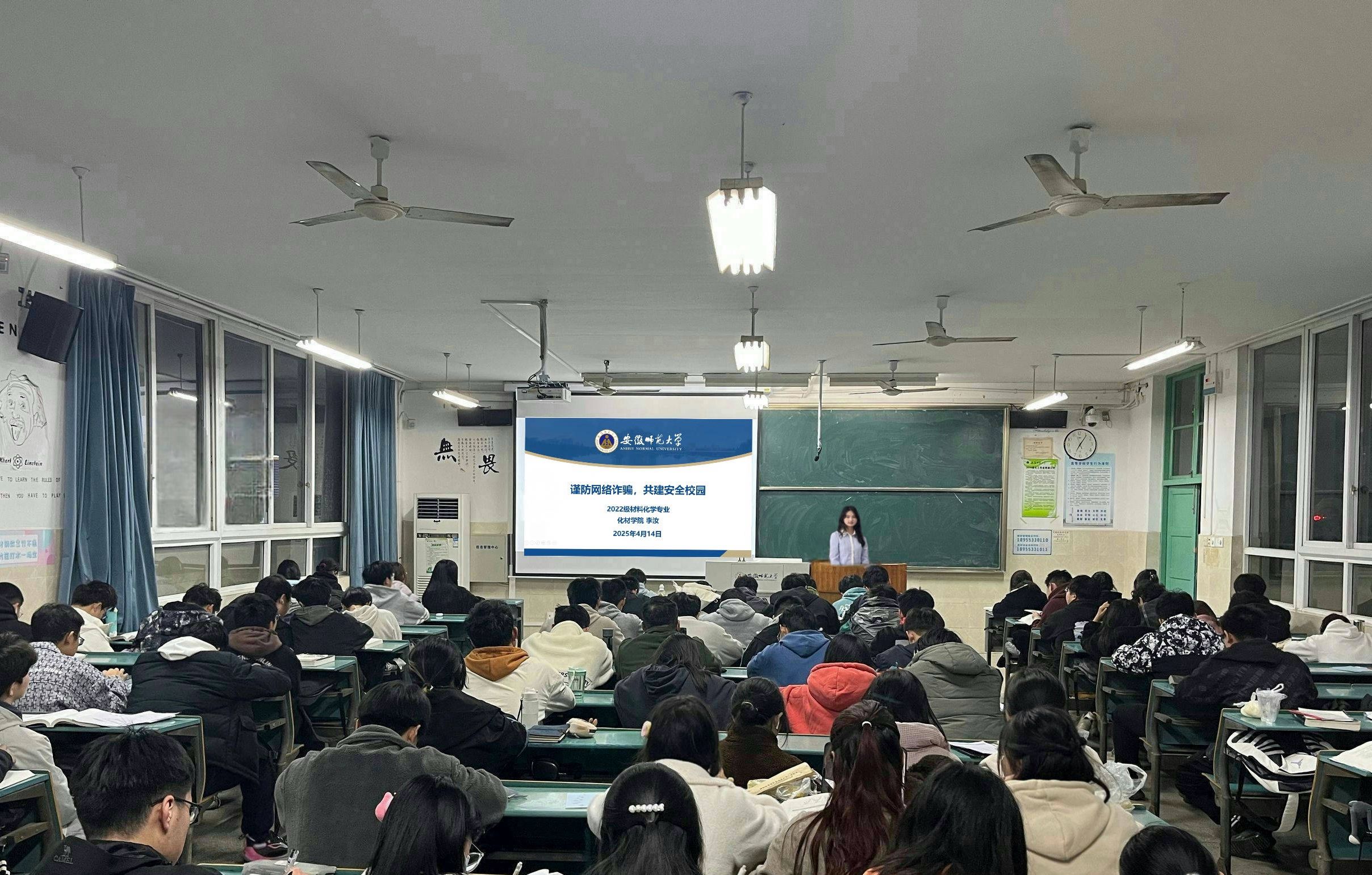 为进一步增强员工网络安全意识,筑牢校园反诈防线,4月14日晚,辅导员李汝在2020101教室为2022级材料化学专业全体员工召开“谨防网络诈骗,共建安全校园”主题班会,通过案例分析、情景模拟与互动问答等形式,切实提升员工防诈“免疫力”。