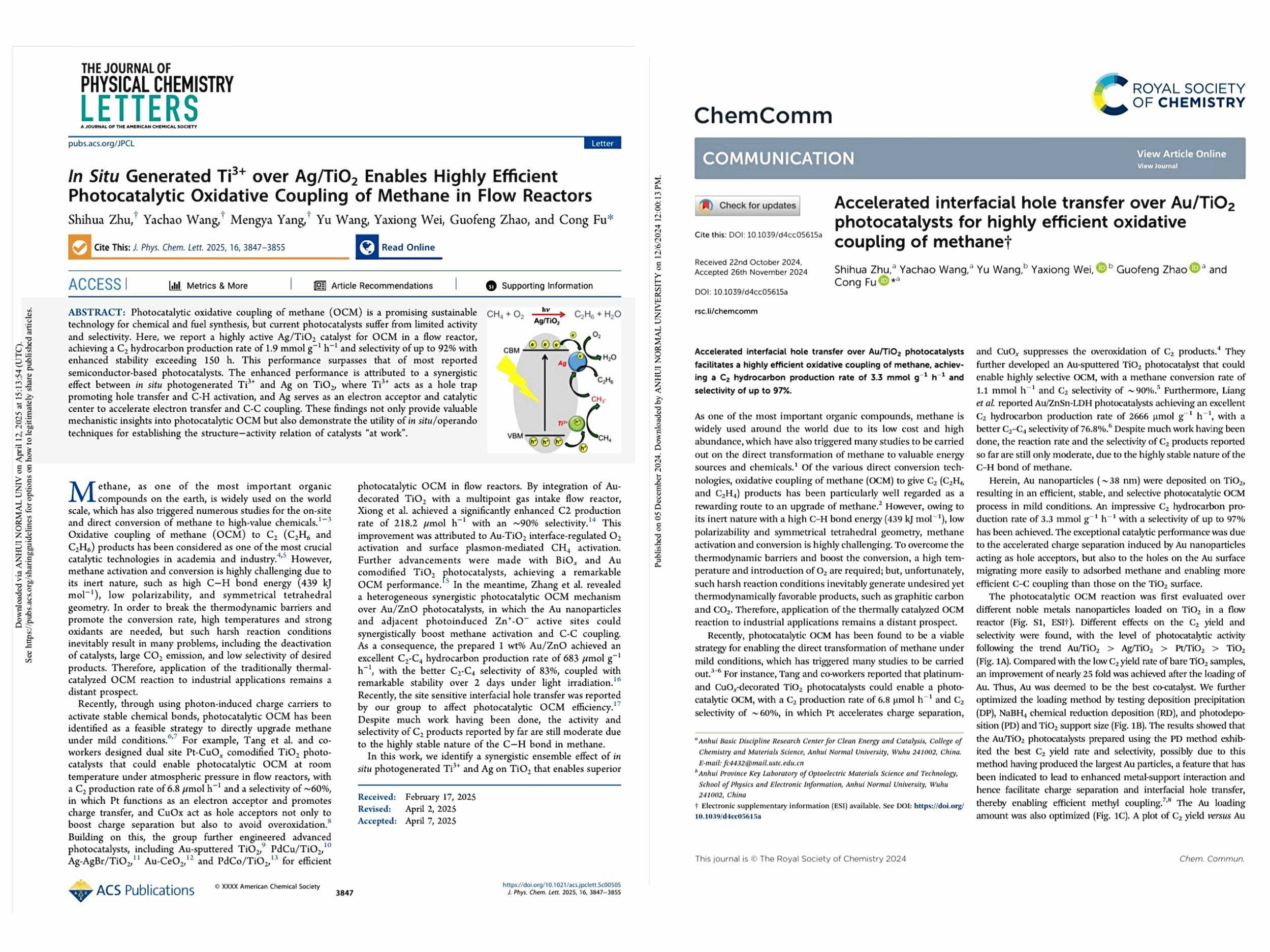实验室的386次失败淬炼出的两篇一作SCI论文(累计影响因子9.1),见证着这位化学学子对甲烷光催化转化的执着追求。面对全球每年23亿吨二氧化碳当量的甲烷温室效应,他在李亚栋院士工作室的365个日夜化作了流动反应器中的精密参数。2023年深冬调试Au/TiO₂界面时,深夜的实验室里,冻僵的手指在笔记上留下的歪斜公式,竟与后来发表于《J.Phys.Chem.Lett》的电子转移模型惊人相似。这些科研探索的注脚,就像甲烷在光催化作用下裂解重组,这位青年的价值正是在无数次试错中完成蜕变。