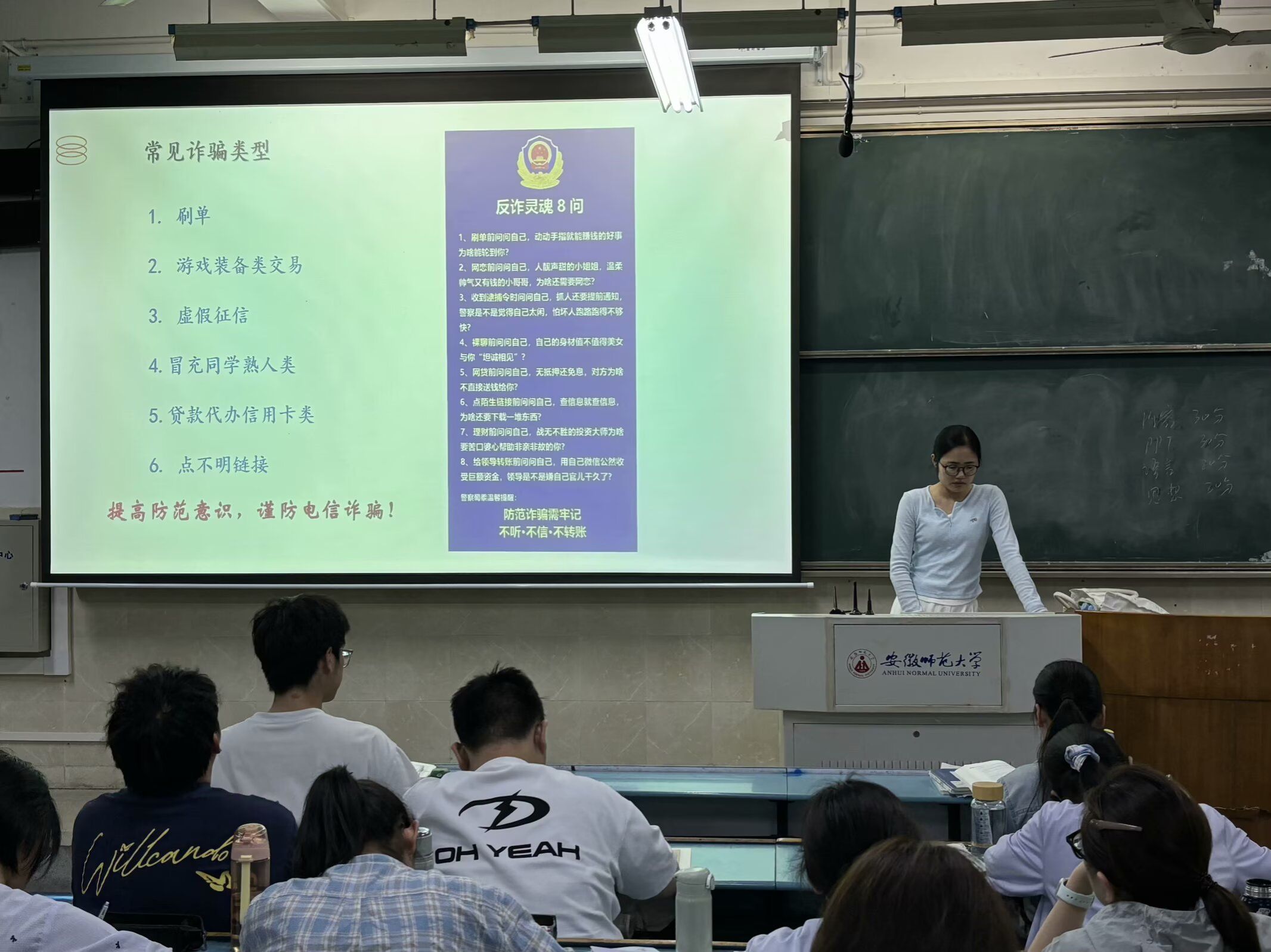 班会上,辅导员围绕五大安全主题,结合近期发生的典型案例,为同学们敲响安全警钟。在交通安全方面,提醒同学们假期出行务必遵守交通规则,拒绝乘坐无牌无证、超载超速等违规车辆;食品安全环节,着重强调要谨慎选择就餐场所,避免食用过期、变质食品;财产安全上,告诫大家外出时妥善保管个人财物,提高警惕,防止财物丢失或被盗;宿舍安全板块,她要求同学们离校前关闭电源、关好门窗,严禁在宿舍使用违规电器,杜绝火灾隐患;在网络安全部分,辅导员结合近期发生的电信网络诈骗案例,详细讲解了刷单返利、冒充公检法、虚假购物、游戏装备类交易等常见诈骗形式。通过剖析诈骗分子的作案手段和常见话术,引导同学们增强识别能力,做到“不轻信、不透露、不转账”,切实提高自身防范意识。