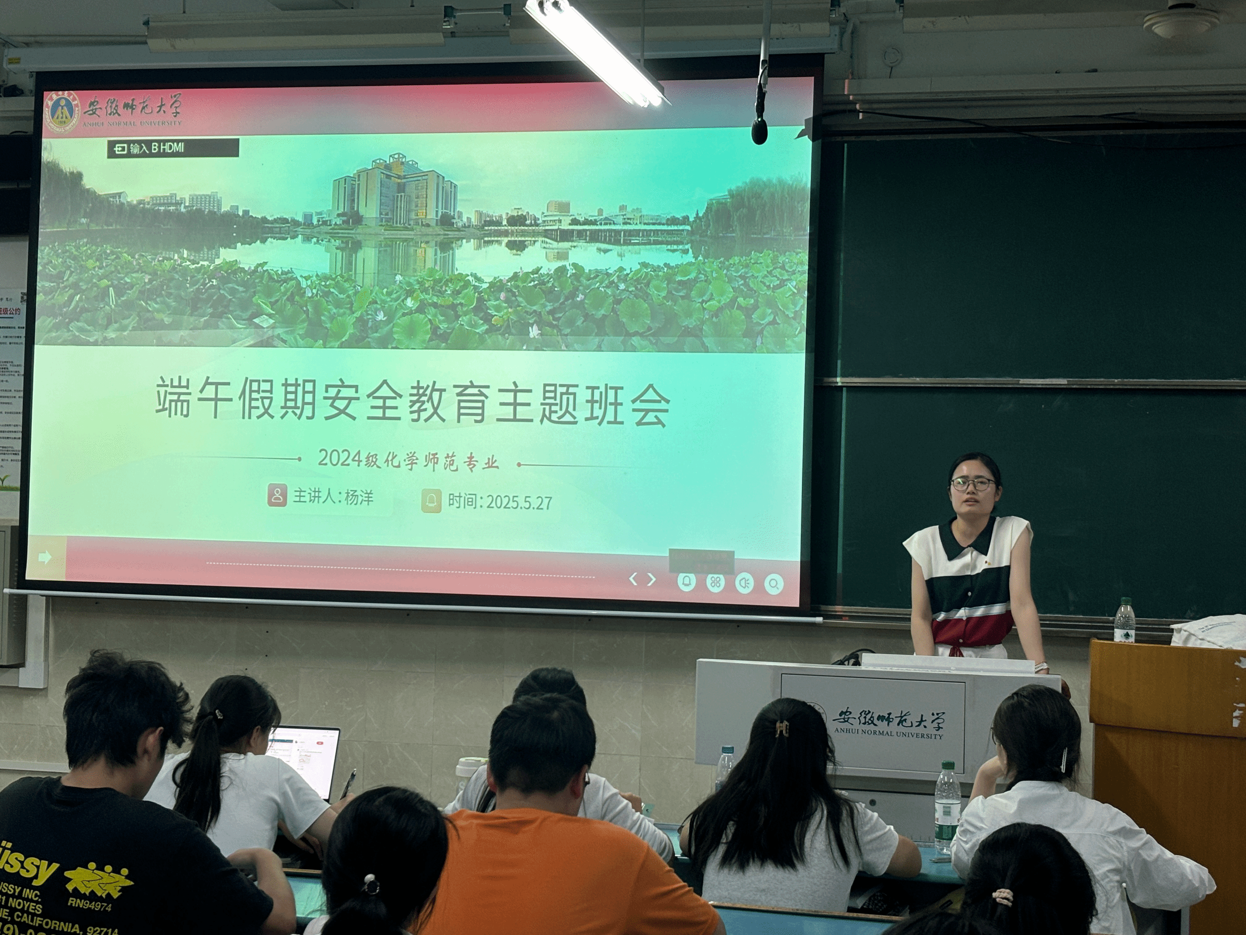 佳节将至,粽叶飘香。5月27日晚,2024级化学师范专业在行知楼1号楼2010303和2010304教室召开端午假期安全教育主题班会。本次班会由辅导员杨洋主持,旨在增强员工安全防范意识,切实保障端午假期安全。