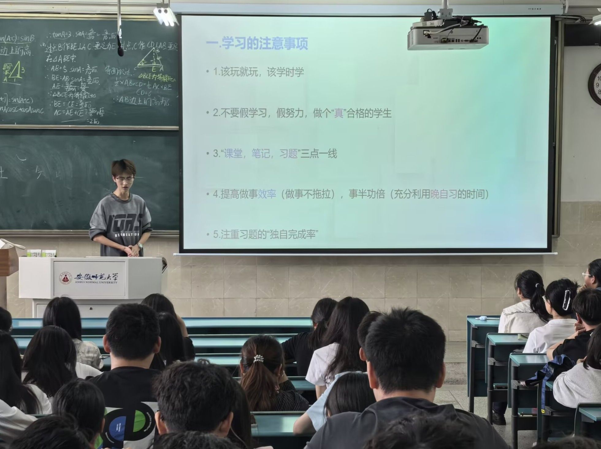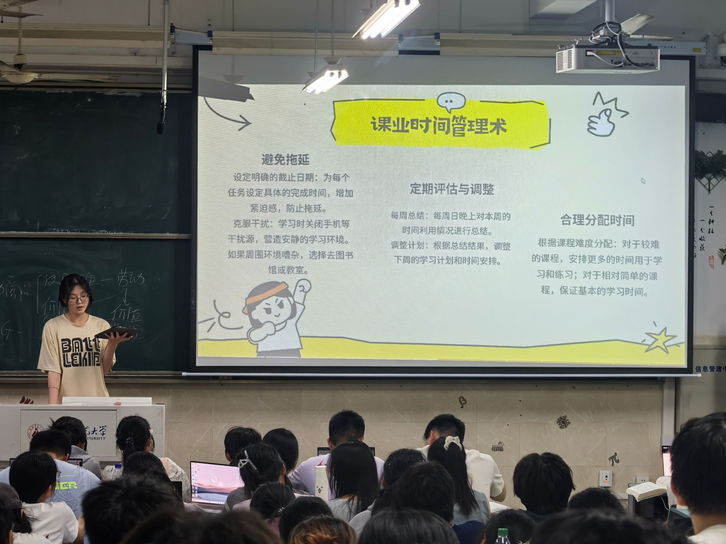 为充分发挥优秀员工的榜样引领作用,班会特别邀请了各班级成绩优异的同学进行经验分享。这些“学习楷模”从不同角度展开交流,毫无保留地分享学习心得。在学习方法上,有的同学强调要构建知识框架,将零散的知识点串联成体系;有的同学则建议多做习题,通过实践巩固理论知识。谈及日常学习安排,同学们纷纷表示制定科学合理的学习计划至关重要,合理分配时间,保证预习、复习与课堂学习的高效衔接。此外,部分同学还分享了宿舍学习氛围营造经验,强调良好的宿舍环境和室友间的互帮互助对学习的积极影响。
