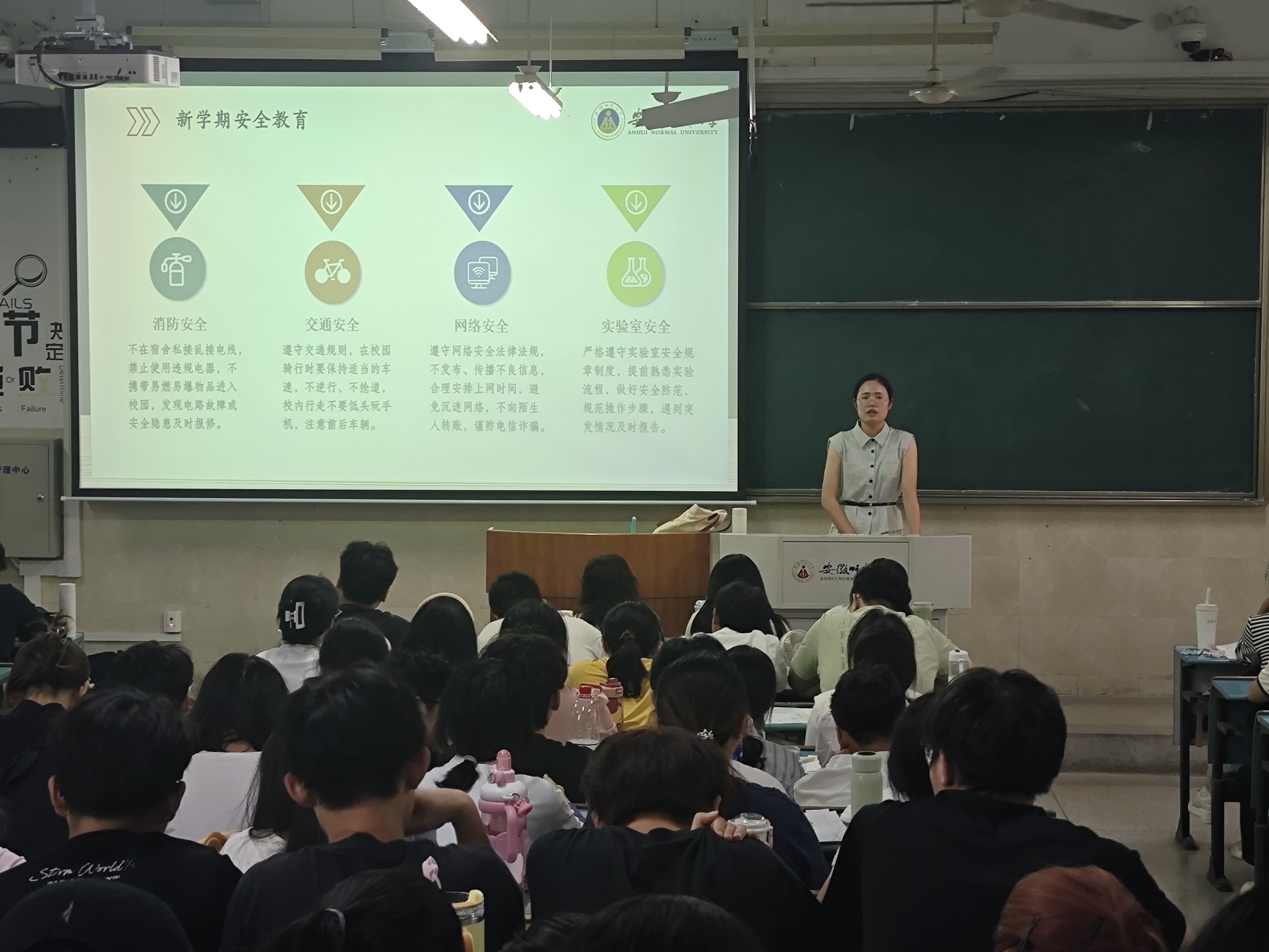 在安全教育环节,杨老师结合高校生活实际,从消防安全、交通安全、网络安全、实验室安全、生命安全等多个维度,开展了一场全面、系统的安全知识普及教育。她通过多个真实案例提醒同学们时刻绷紧安全之弦,不断增强自我保护意识和能力,注意人身与财产安全,严禁在宿舍内私拉乱接电线、使用违规电器,外出时遵守交通规则,强化防范意识。针对专业特点,她特别叮嘱大家必须严格遵守实验室安全规章制度,按照规范进行实验操作,做好安全防护。此外,随着网络在日常生活中的深度渗透,她建议同学们合理规划上网时间,提升信息辨别能力,警惕各类网络诈骗陷阱,努力做到健康上网、理性用网。