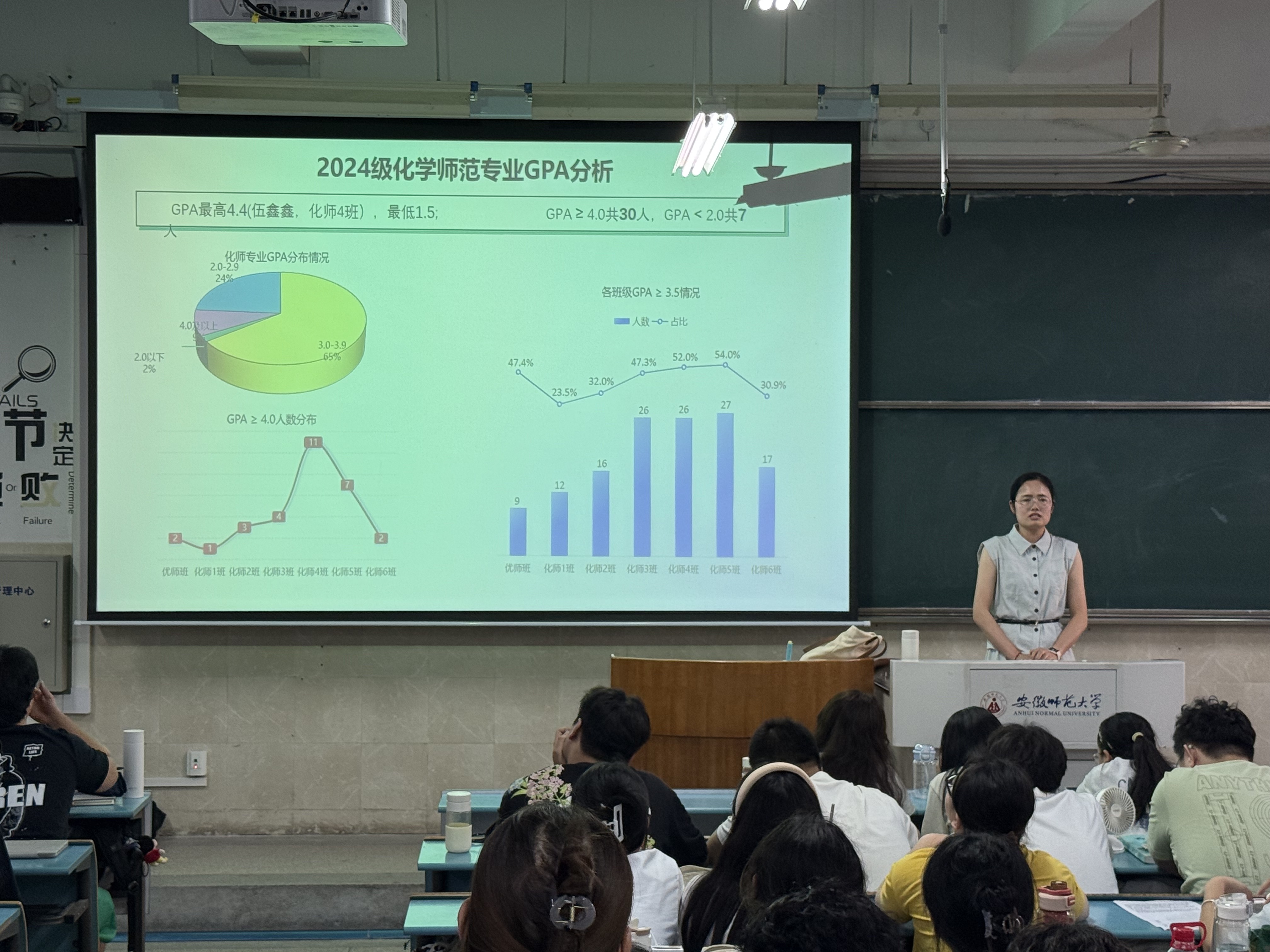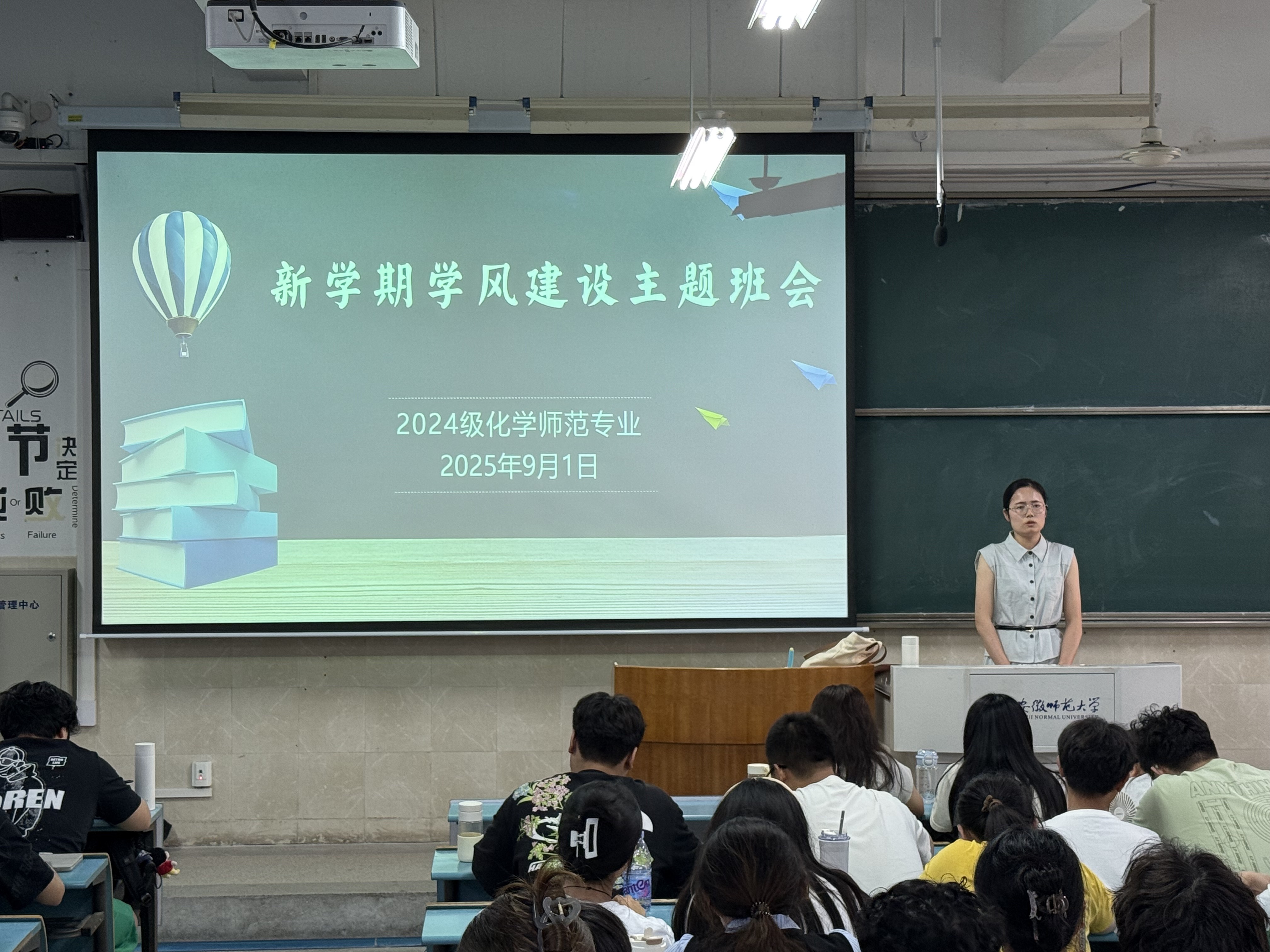 新学期伊始,为扎实推进学风建设,帮助大二员工明确学习方向、调整学习状态,9月1日晚上,辅导员杨洋在行知楼分班级开展了学风建设主题班会,2024级化学师范专业全体员工参会。