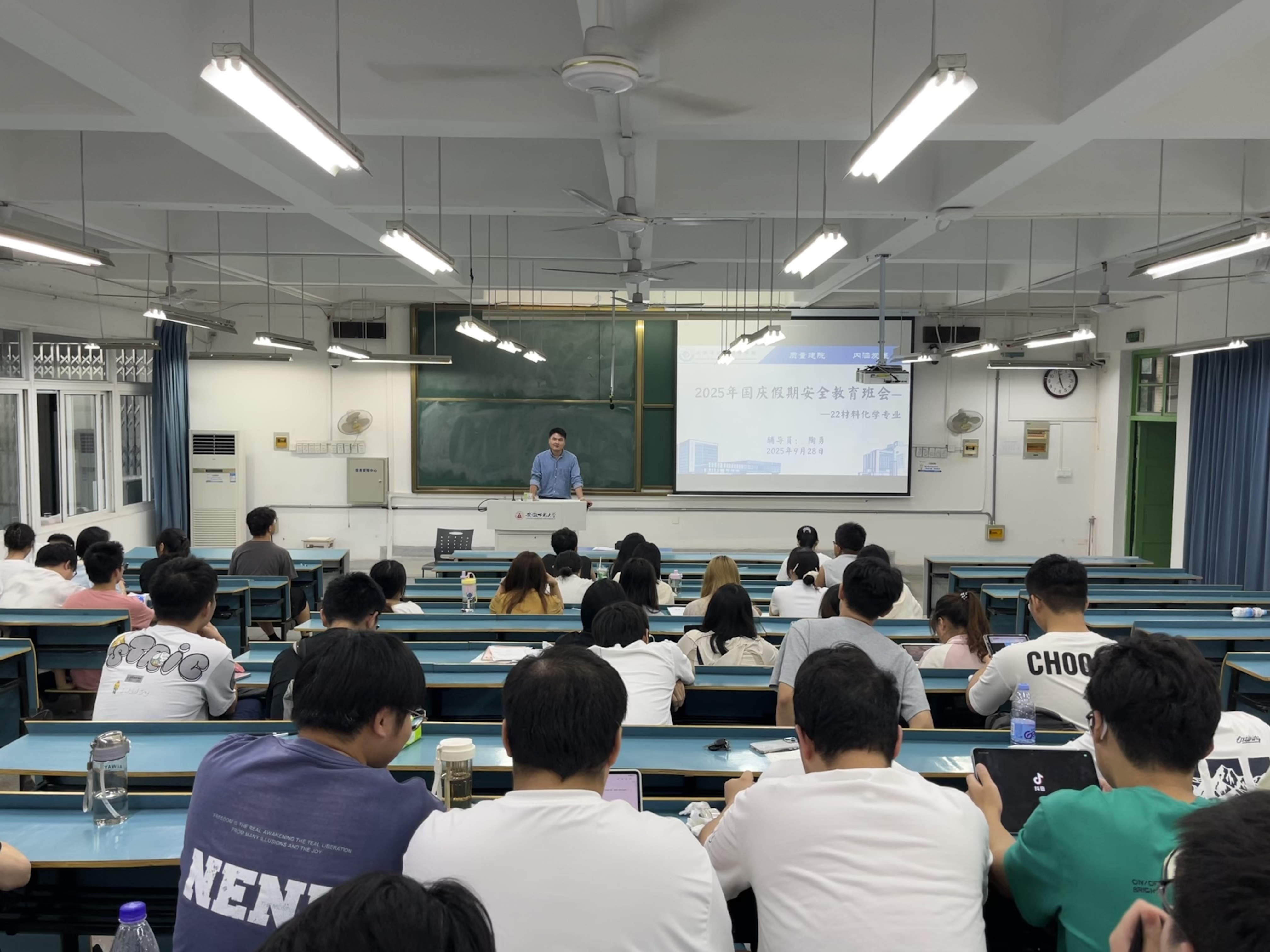筑牢安全防线,平安欢度国庆。为切实保障员工国庆假期人身财产安全,增强员工安全防范意识与自我保护能力,引导全体同学度过一个平安、健康、有意义的假期,9月28日下午,22级材料化学专业在2070201教室召开国庆假期安全教育主题班会。本次班会由辅导员陶勇主持,专业全体同学参会。
