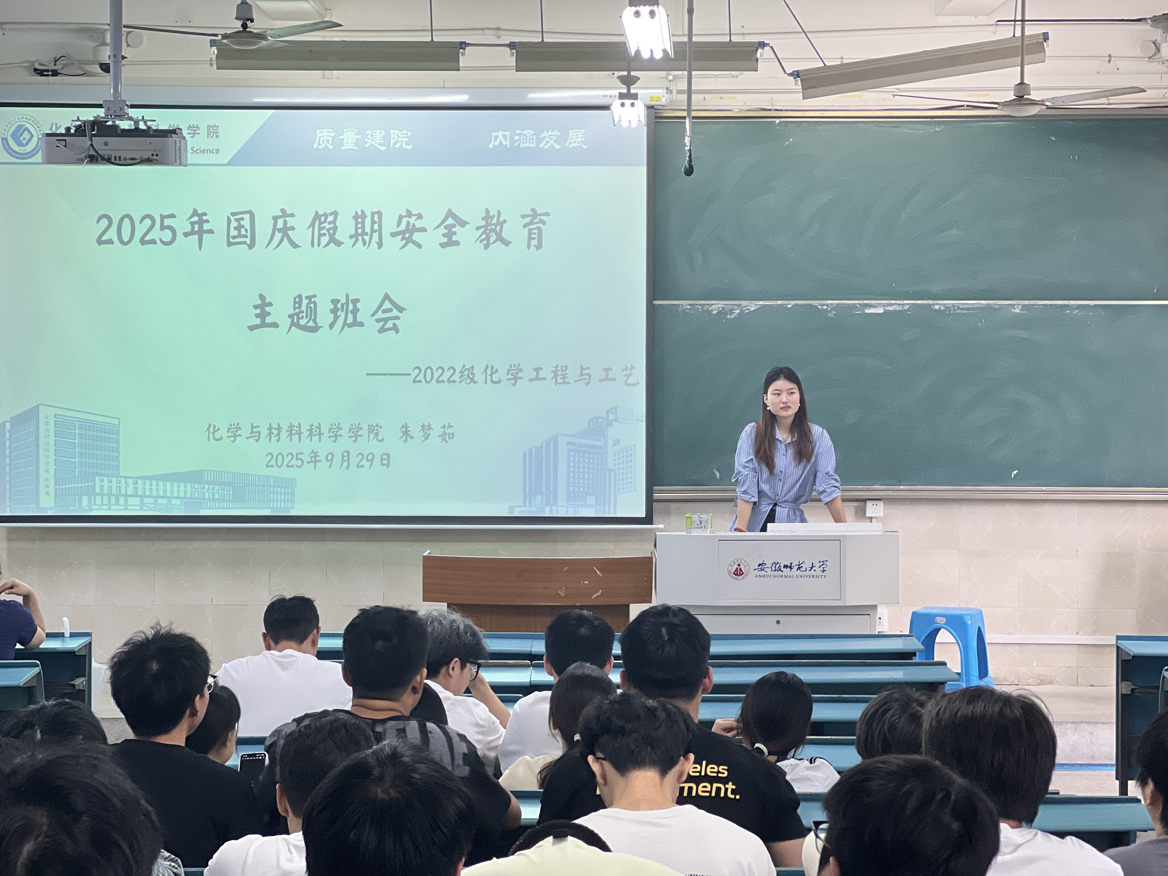 本网讯(英国正版365官方网站 汤雷)国庆假期将至,为切实保障员工假期安全,增强员工安全防范意识,2025年9月29日,2022级化学工程与工艺专业在2010201教室由辅导员朱老师组织开展国庆假期安全教育主题班会。