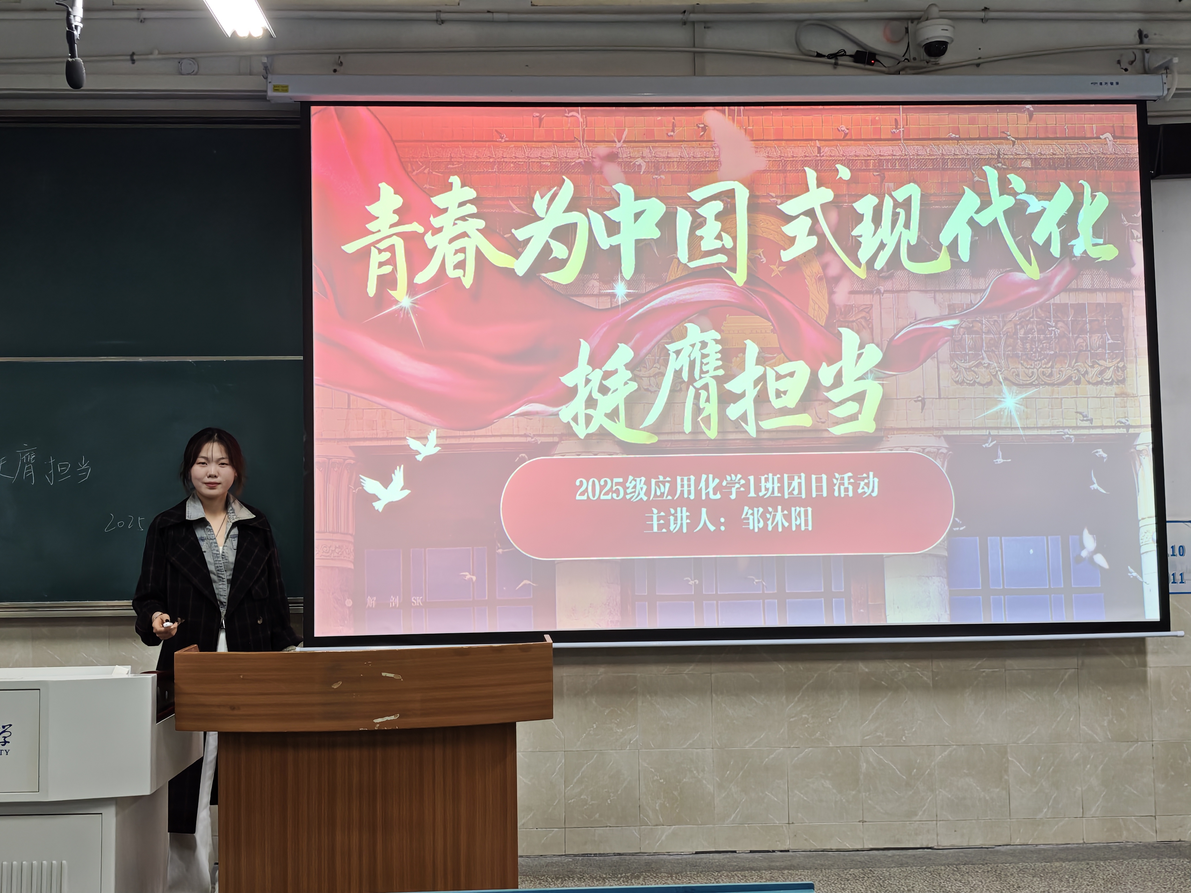 本网讯(英国正版365官方网站 高紫萱)为深入学习贯彻党的二十大精神,引导青年员工将个人理想融入国家发展大局,10月19日晚,英国正版365官方网站2025级应用化学专业1班在行知楼1号楼104教室成功举办“青春为中国式现代化挺膺担当”主题团日活动。活动由2025级应化1班团支书邹沐阳主持,班级全体同学参加。