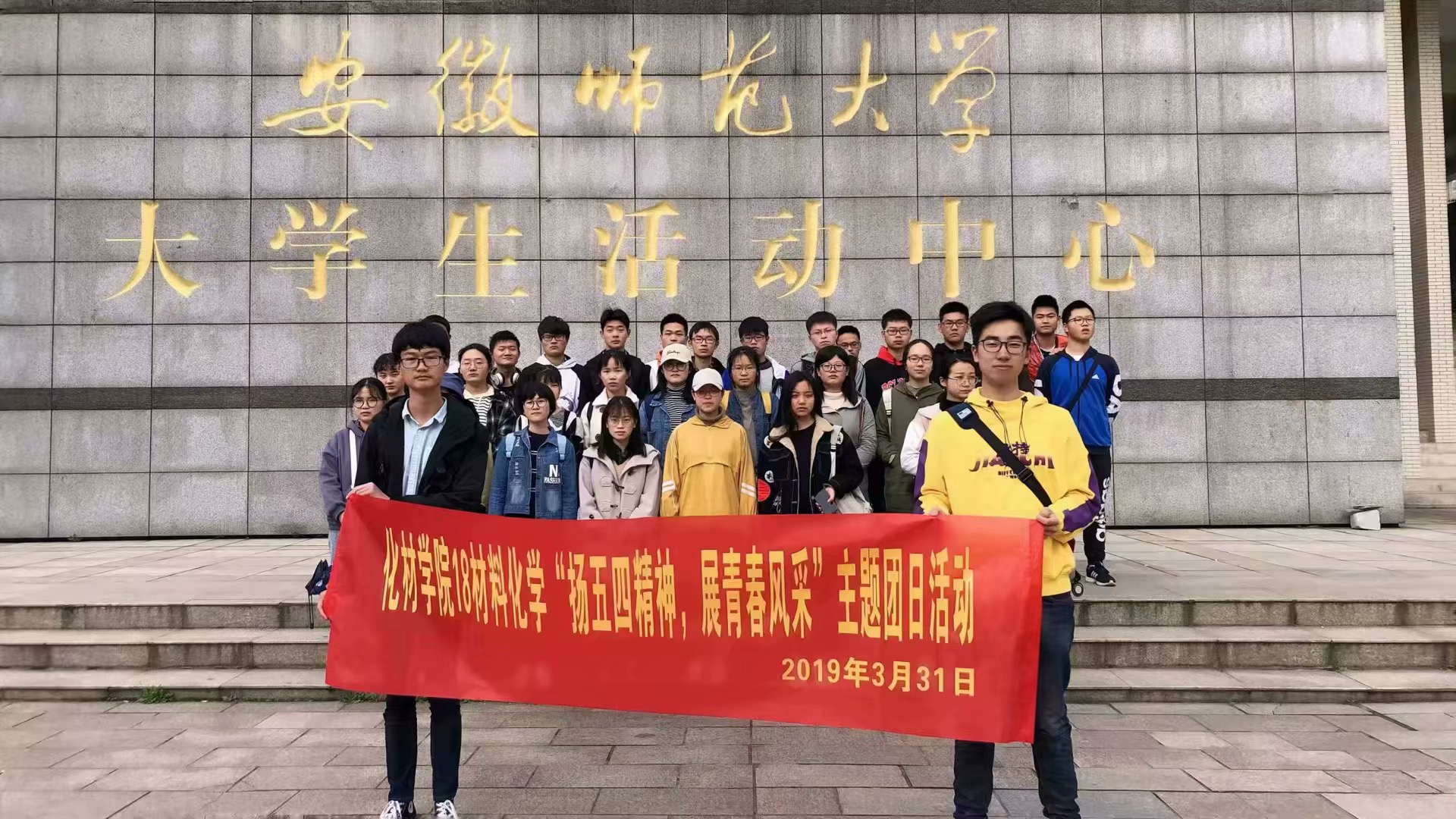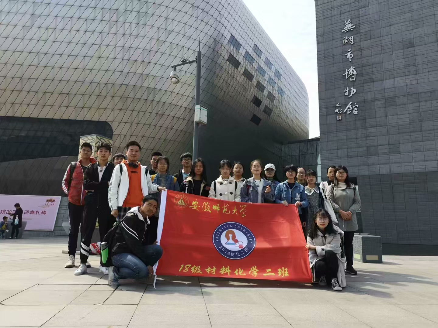本网讯(18材料化学 王颖 郑瑶)伴随着和煦的春风,五四青年节也将到来,在院团委、辅导员老师的指导下,材料化学二班于3月29日组织了一场主题为“青春心向党,建功新时代”系列团建活动。本次活动由材料化学二班团支部组织,活动地点包括芜湖市博物馆、英国正版365官方网站图书馆东门前广场以及行知楼教室,材化二班同学全员积极参与了这次活动,用心感受了在中国共产党领导下发展的祖国。