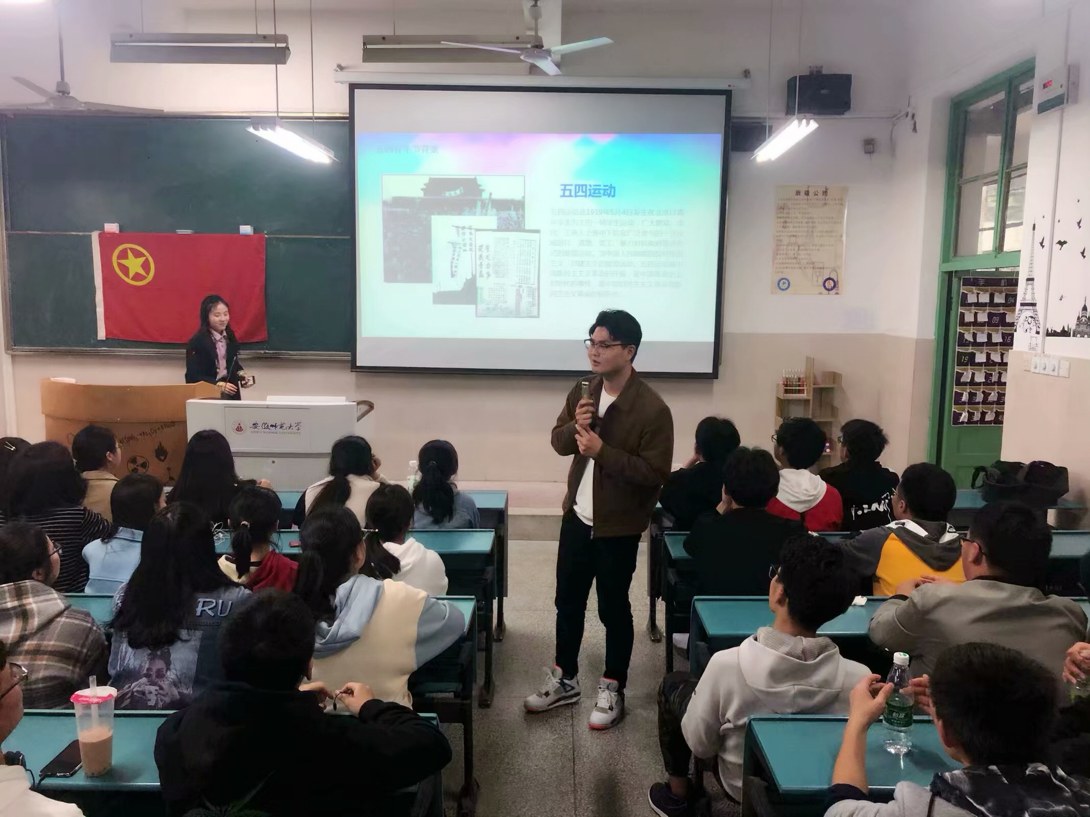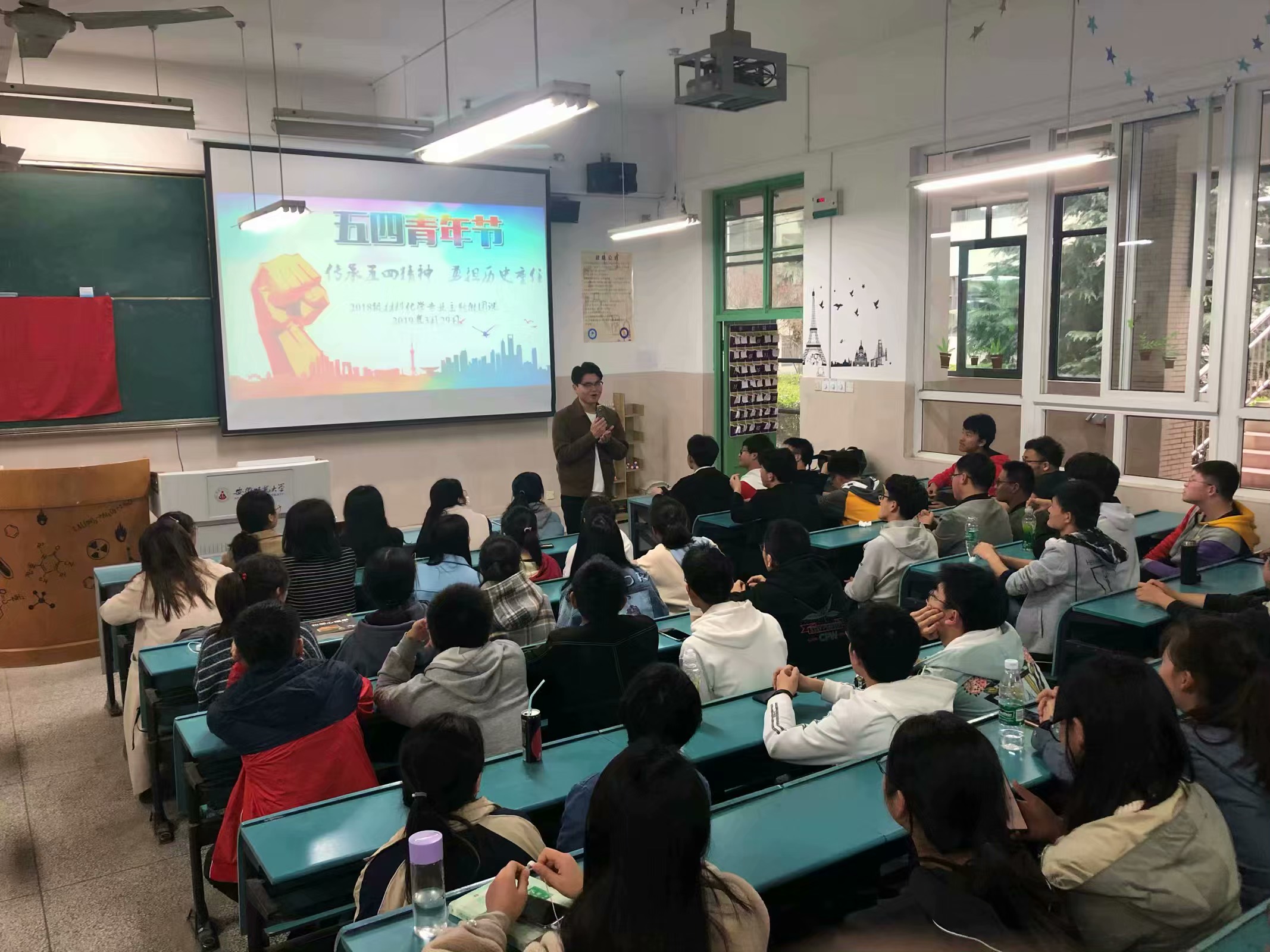 3月29号下午,本班在固定教室开展以"传承五四精神,勇担历史重任"为主题的微团课活动,此次微团课由辅导员陶勇主讲,18级材料化学二班同学全体参与。辅导员向同学们介绍了五四历史事件以及五四青年节的由来,浅谈了老员工所要学习的五四精神。辅导员深入了解了我们目前对于老员工活的适应情况,探讨了我们对未来生活的规划。本次班会简洁明了、意义深刻。虽然只有15分钟左右,但是却充分表达了我们对于五四青年人的敬仰,也使我们再一次深刻的思考了自己的老员工活以及对未来生活的规划。本次班会圆满成功,未来将共当勉励。
