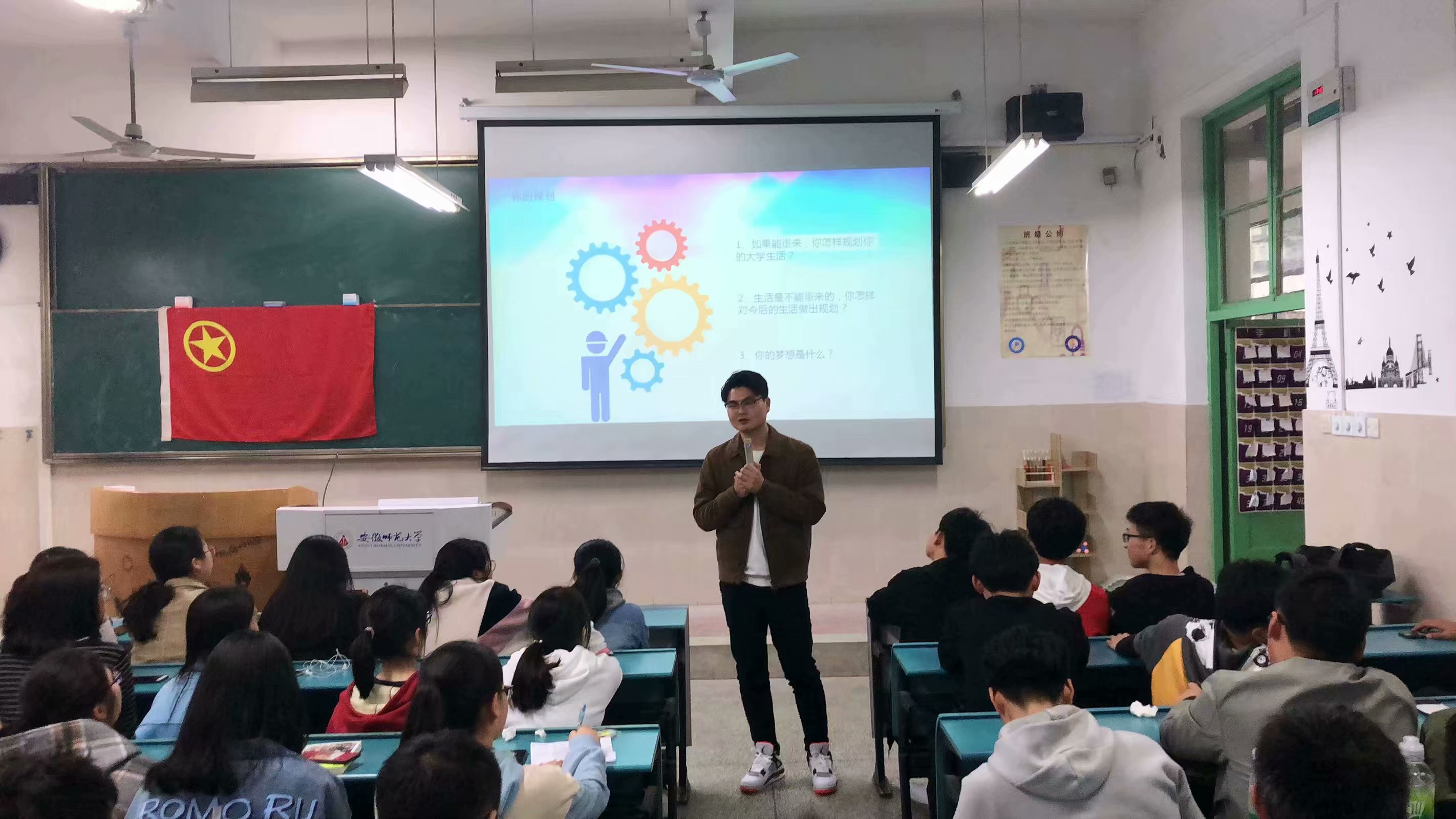 本网讯(18材料化学 黄宁宁)为庆祝中华人民共和国成立70周年、纪念五四运动100周年,展示青年员工蓬勃向上的精神风貌,提升支部的活力,2018级材料化学1班团支部于上周末举办“青春心向党,建功新时代”主题团日活动。 3月29日下午,支部特邀请辅导员陶勇老师为同学们讲授“传递五四精神,勇担历史重任”微团课,课程短小精悍,分别从背景、爆发、意义等角度展开,结合当下老员工的实际情况分析青年人的现状。其中的交流环节反响热烈,金宇、倪钰德、江成玉同学分别就过去反思、现状改变、未来规划三个方面分享自己的心路历程。同学们认真聆听,积极参与,纷纷说出自己的心声。 团课过后,我支部又来到校园一角——印有“皖风诗韵”石刻的水边。在夕阳温馨的光辉下,感受春日的气息,开展进一步的探讨。在文娱委员丁子午同学的领唱下,同学们齐唱国歌与团歌,歌声铿锵有力,过程庄严肃穆。之后,在团支书黄宁宁同学的带领下,大家再一次重温入团誓词,时刻提醒自己身为团员的使命与义务。在鲜红的团旗下,金宇同学作为优秀共青团员进行了一场关于五四精神的演讲,与我们分享他眼中的五四精神的内涵,联系自身与班级实际谈论五四精神的当代价值。篇幅不长,却是情真意切,引人深思。 此外,支部在班级官Q上开启“五四微话题”专栏,同学们在三个话题下踊跃留言,说出自己的梦想与目标;同时,纸质版活动感悟专栏随之开启,大家以团小组为单位,聚在一起讨论“如果回到那个时代最想干什么”、“联系自身实际谈谈你对青春正能量的想法”、“通过今天的活动你对五四精神有什么新的认识”等三个话题,在卡片上写下自己的感受。在严肃而不失活泼的氛围中,完成了一场心与心的交流。 3月31日上午,材料化学专业的部分同学前往芜湖市博物馆进行参观,16位同学在博物馆里见证了芜湖的古往今来,照片墙上记录着芜湖的发展与变迁,芜湖长街上叙述了旧时的风情万种……同学们在这次参观中受益匪浅。 通过一系列的活动,同学们加深了对五四运动的理解,展示了积极热情的一面,相信大家在接下来的学习和生活中能以更加饱满的精神迎接每一天,真正践行五四精神。