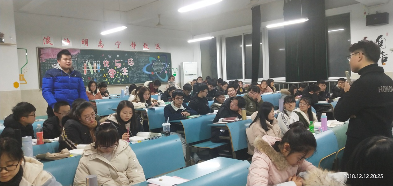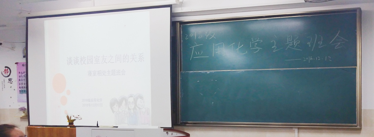 本网讯(18应化二班 王皓月)2018年12月12日晚,辅导员陶勇带领应用化学专业全体同学开展了室风建设主题班会,旨在正确营造寝室整体学习氛围,调节室友间矛盾。