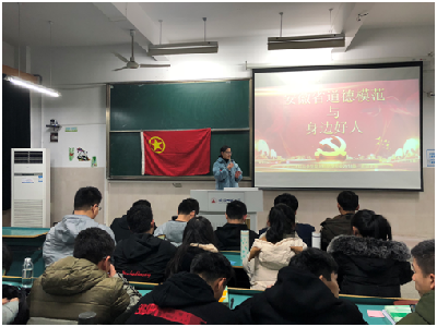 首先,由团支书黄宁宁以“安徽省道德模范与身边好人”为题导入本次活动的主要内容,并以24字社会主义核心价值观为切入点宣传了社会主义新时代优秀思想道德规范倡导同学们学习优秀道德思想做他人身边的道德先人。
