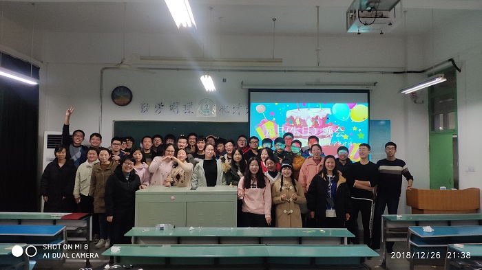 12月26日晚,2018级化学(非师范)专业在行知楼7栋304室举办了元旦晚会。晚会主要围绕同学们的日常生活开展,由班长丁一泽、副班长王梦哲共同主持,全体化学(非师范)专业(以下简称化非)同学及辅导员程紫丹老师共同参与了本次活动。 晚会开始前,同学们精心布置了班级,让人耳目一新。全体化非同学到齐后,丁一泽同学宣布元旦晚会正式开始。晚会形式自由,同学参与度很高。首先徐峻驰、冯乐明、丁一泽等同学为大家展现了自己的歌声,其中冯乐明同学还演唱了一首外文歌曲,十分惊艳;几位同学的演唱点燃了观众的热情,而接下来的小游戏“谁是卧底”更是将气氛推向高潮,同学们纷纷参与进来,一展身手;在“趣味知识小竞赛”中,颠覆了同学们对日常生活的普遍看法,使同学们有了一个全新的认识,也让人感叹同学们的见多识广;接着进行的是“成语接龙”游戏,同学们各个博学多识,难分高下,同时也让人感受到了中华文化的博大精深;最后,程紫丹老师为同学们倾情演唱《身体健康》,表达了对同学们的美好祝愿,并与同学们一起分享了新年蛋糕后,宣布晚会到此结束。 晚会结束后,程紫丹老师召开了主题班会,班会谈及同学们的成长以及未来发展等问题,并对同学们未来的学习生活给予了美好的祝愿,同学们都受益匪浅。
