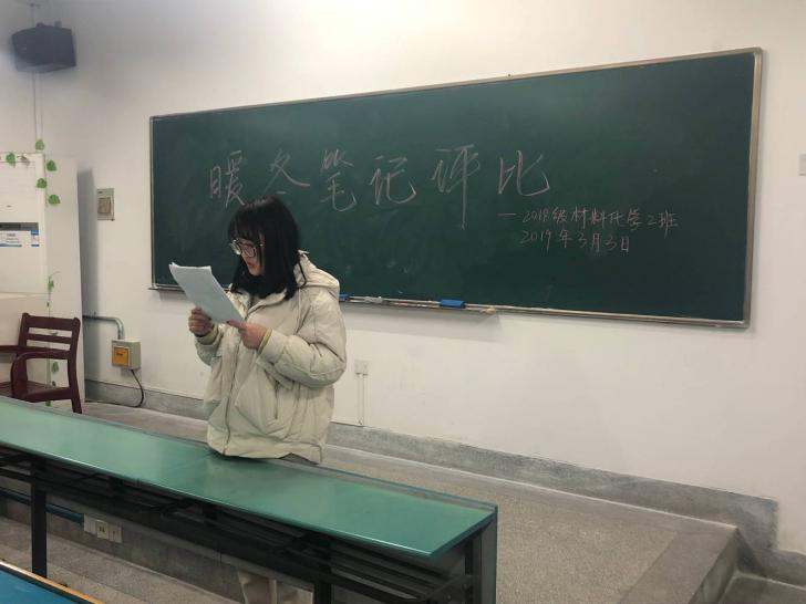 本网讯(18材料化学 吴晨曦)寒假旦暮四十日,同窗皆有所获。2019年3月3日晚自习,材料化学的同学们在2070507和2070509教室召开了家乡年味与暖冬笔记评比主题班会,同学们分享了各自在寒假生活中的所获所感。