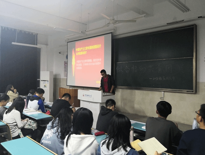 本网讯(18应用化学 陆陈鑫)弘团光辉历史,展今青春风采。2018级应用化学专业于2018年10月10日在2010308教室举行了第一次团组织会议。自1919年五四运动以来,一大批优秀青年应运而生,共青团也随之在1920年诞生。