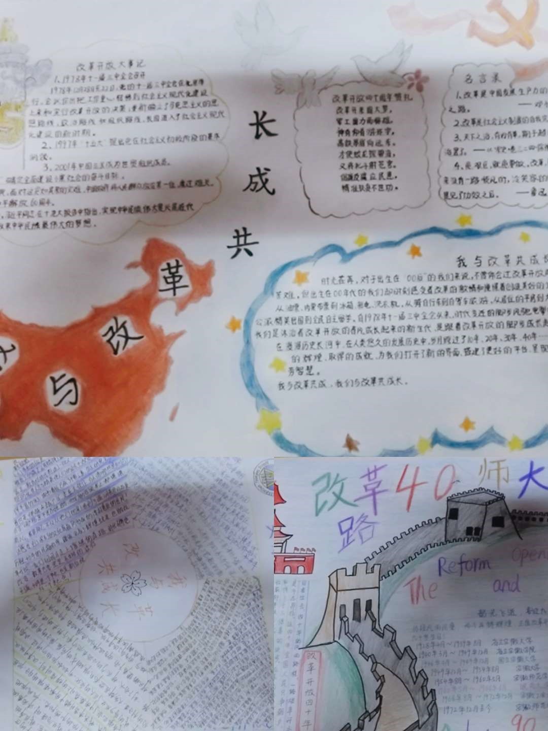随后,各小组分别展示本组成员精心绘制的以改革发展委主题的手抄报。各组绘制的海报内容丰富,排版整齐,展现同学们对于改革开放的认知和期待。活动最后由331寝室的同学为我们带来《祖国啊祖国》诗歌朗诵,同学们认真聆听,从他们富有情感的朗诵中感受祖国的繁荣与富强。