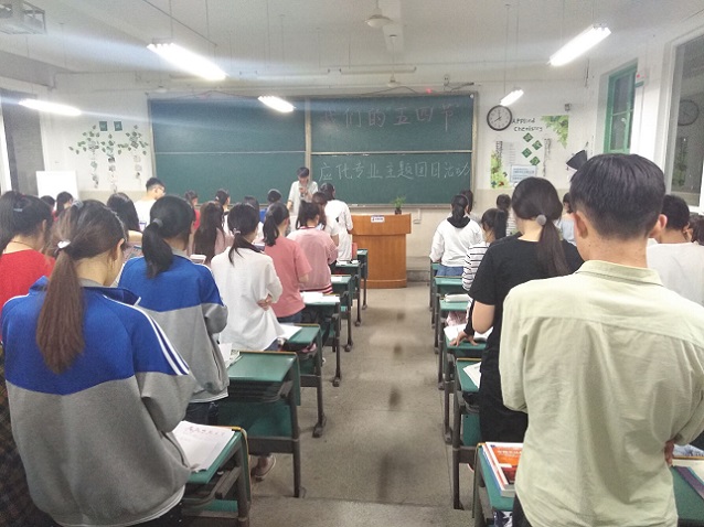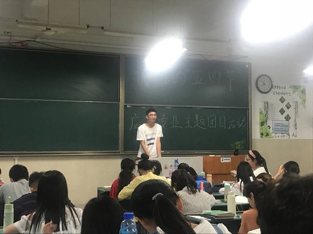 (文:马梦悦 图:王若馨)为弘扬五四精神,牢记青年使命,5月3日晚,17级应用化学专业全体员工在行知楼2010504教室开展了“我们的五四节”主题团日活动。活动由应化1班团支书裘忆主持。