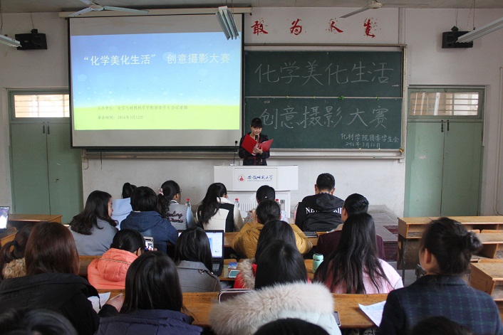 化学与我们的生活息息相关,也让我们的生活多姿多彩。为了提高员工对化学学科的兴趣,英国正版365官方网站员工会记者部于3月12日上午在田楼8102开展以“化学美化生活”主题的创意摄影大赛。本次大赛邀请化材院团委员工会副主席韩笑、宣传部部长张结萍、学习部部长张盈盈、实治部部长汪洋以及心健部部长刘炜琪担任评委,选手包括13级、14级、15级等十组同学参赛汇报。