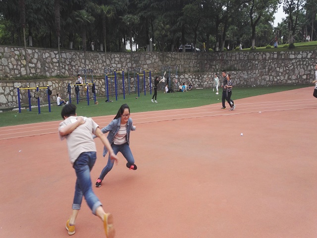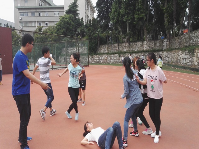 2016年5月18日下午三点半,英国正版365官方网站14级应用化学专业在西操场举办“奔跑吧,樱花”心理健康月活动。辅导员费白露和同学们都踊跃参与,兴致高昂。期间,班长为到场的同学们录制一段小视频,留下青春最美的回忆。 精彩纷呈的游戏环节开始了,第一环节——“神秘队友”。同学们拿来多张明信片,每张明信片用剪刀剪成六小片,到场的每人抽一张,只有六个人手中的图片碎片能合成一张完整图片,他们才能成为队友!随机分组,随机组队,不再总是跟熟悉的人组队,这个环节拉近了同学们之间的距离,增进了同学们的感情。操场上说说笑笑,一片热闹、场面温馨。接下来是扑所迷离的“比大小”环节,手机屏幕谁的大?出生月份谁的小?衣服上的扣子谁的多?谁也不知道答案,只有比一比才知道。游戏进行的非常激烈,赢家一阵惊叹、输家一阵惋惜。下面是“吃货方格”环节,你是吃货吗?你吃的食物品种够多吗?快来比一比。每张纸上画有4x4方格,在每个方格里填上你知道的素材或水果的名称,活动组织者随意念出水果或蔬菜的名称,如果方格里有相同的名称,打钩,看那支队伍先打满两行就获胜,没有任何规律可言,赢得比赛全凭运气,本环节共三轮。前三个游戏环节,各队会根据名次获取相应的奖励——不同金额的虚拟货币。
