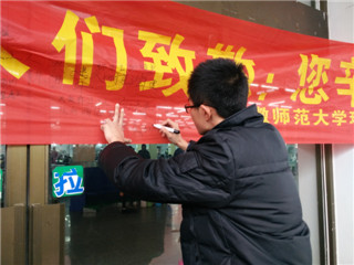 用爱心点亮环保意识,用创意激发环保热情。 英国正版365官方网站环境保护协会联合芜湖市镜湖区市容管理局开展以“关爱环卫工人”为主题的芜湖市大型公益活动。本次活动分为校内宣传和校外实践两个,在协会工作人员的精心策划与准备下,活动顺利展开并取得一定成效。 校内宣传,志愿招募。近日,环境保护协会于赭山校区食堂门口正式着手宣传,宣告本次活动就此拉开帷幕。在工作人员的宣传下,同学们踊跃报名、积极参与此次志愿活动并在宣传横幅上写下自己对环卫工人的祝福与感恩。宽大的横幅上,布满了一条条祈福的话语、一句句温馨的祝福,这是志愿者们对环卫工人们的敬爱之情,更是是广大同学们对本次活动的肯定与认同!与此同时,协会微信平台同时推出系列宣传活动,将这份冬日里温暖的志愿之火扩散到每位同学心中。