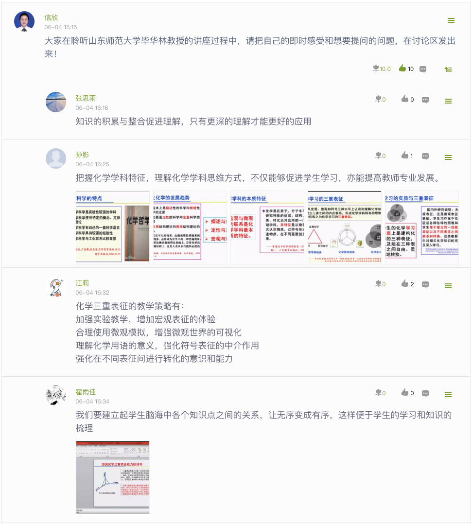 同学们都纷纷表示这是一场收获满满的讲座,刷新了对三重表征的认识。期间,同学们积极地在网络平台上与毕教授展开互动。整个讲座高潮迭起,精彩不断。