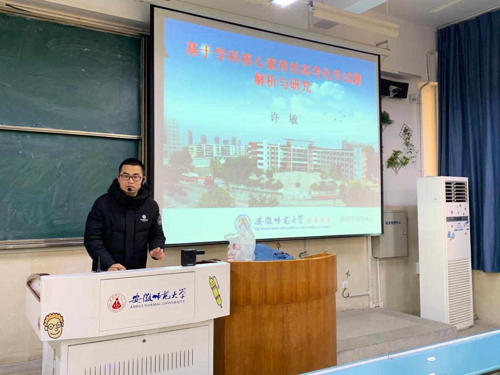 2020年12月16日上午8:00教学楼2010303教室2018级化学师范生悉数到位,聆听安师大附属中学许敏老师的精彩授课,此次授课的主题是《基于学科核心素养的高考化学试题解析与研究》。把一线优秀中学化学教师请进大学课堂的这种形式至今在师范专业本科生中已延续近六年,受到了广大师范生的一致好评,这种形式不仅实现了课程连接公司和社会,又突出了师范教育的特色。这也是2020年英国正版365官方网站“中学化学名师讲坛”系列活动的第十讲。