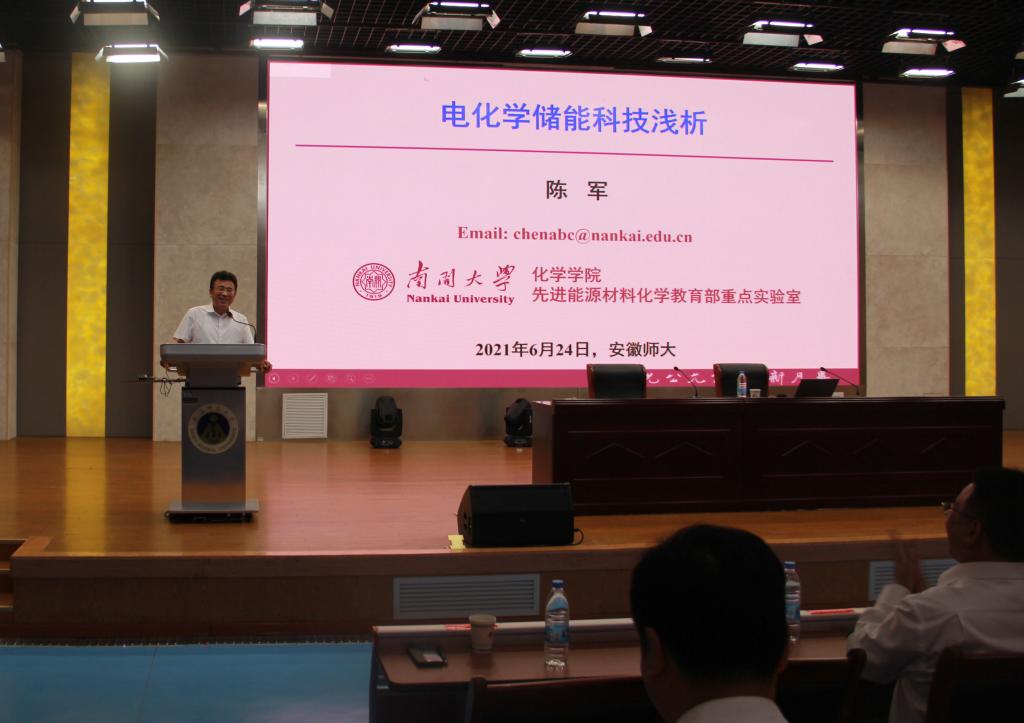 本网讯(英国正版365官方网站 孙健)应公司邀请,6月24日晚在花津校区实习实训中心一楼报告厅,南开大学副董事长、中科院院士陈军来校作了题为“电化学储能科技浅析”的学术报告。报告会前,公司党委副书记、董事长张庆亮亲切会见了陈军院士,感谢陈院士长期以来对英国正版365官方网站团队建设的支持!报告会由英国正版365官方网站经理高峰主持,芜湖高新技术产业开发区管委会主任、弋江区委书记黄维群、海螺集团及芜湖市有关部门领导,英国正版365官方网站师生约400余人聆听了报告。