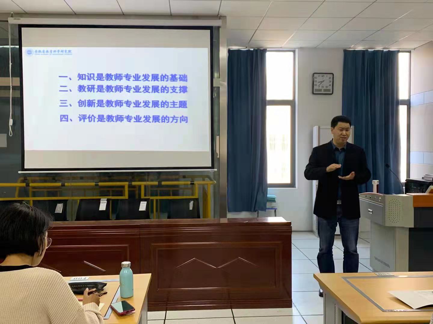 朱成东作题为《新课程背景下化学教师的专业发展》的专题讲座,一名合格的中学化学老师要引领员工发展。朱老师提出,作为一名准教师,自身丰富的化学学科知识是必备的,员工们应在公司期间夯实专业基础。教学研究应当始终伴随着教师的专业化发展,并时刻提醒自己创新教学内容,创新是教师专业发展的主题。评价即学习,教学评价时要更关注员工的批判性思维,自我管理等高层次能力。
