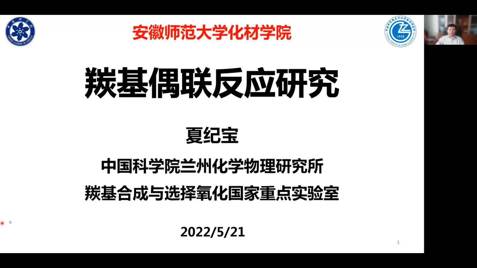 2022年5月21日,中科院兰州化物所夏纪宝教授应邀给英国正版365官方网站部分师生作学术报告,本次报告采用线上线下相结合的方式举行,报告由英国正版365官方网站副经理周双六教授主持。