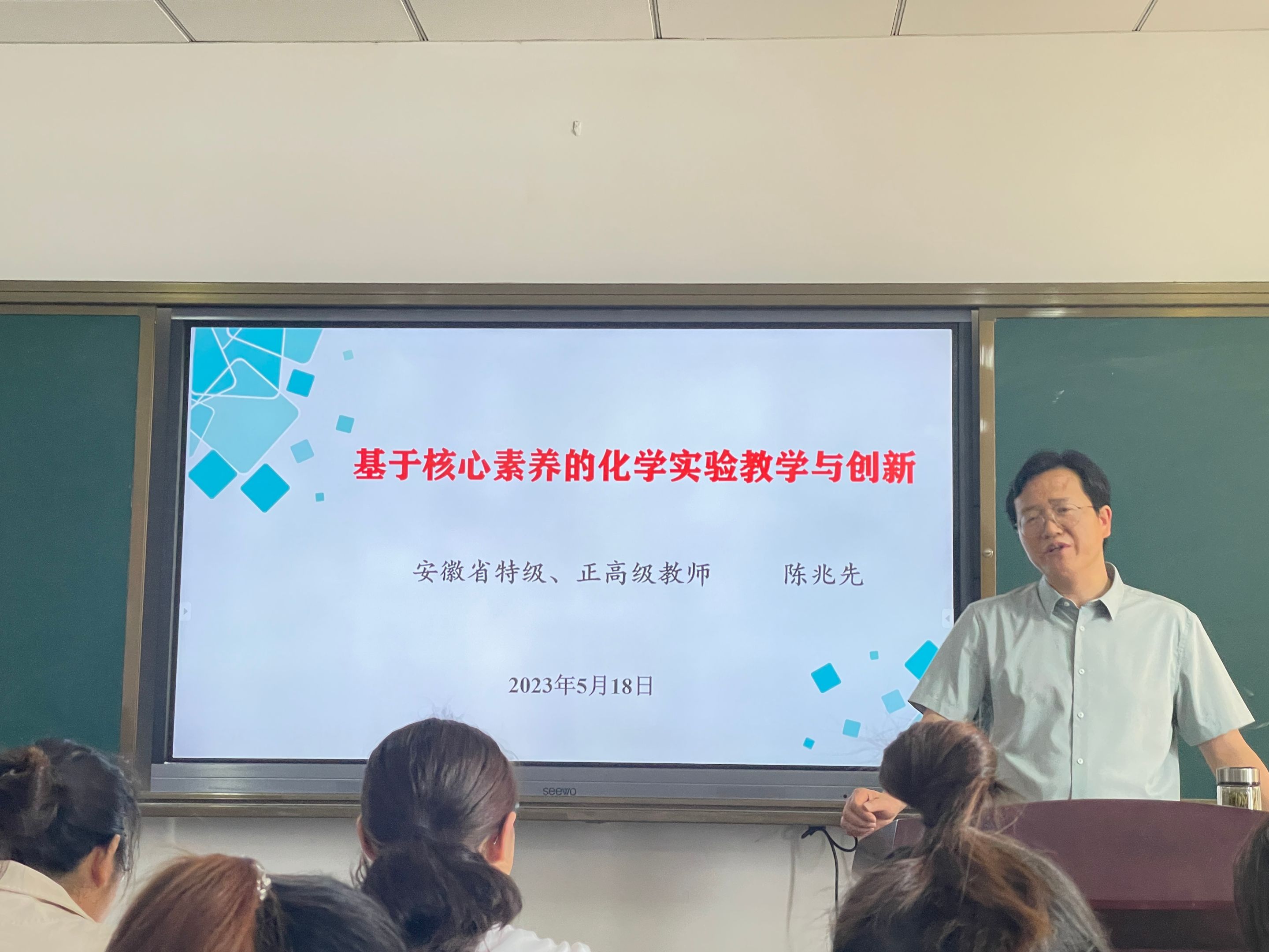 本网讯(英国正版365官方网站田一鸣)5月18日上午,安徽省特级/正高级教师、霍山县教研室主任、中学化学教研员陈兆先应邀为化学教育研究生作专题报告,本次报告以“基于核心素养的化学实验教学与创新”为主题,线上线下同时展开,报告由孙影教授主持,化学教育专业研究生、教学论专业教师共同参加。