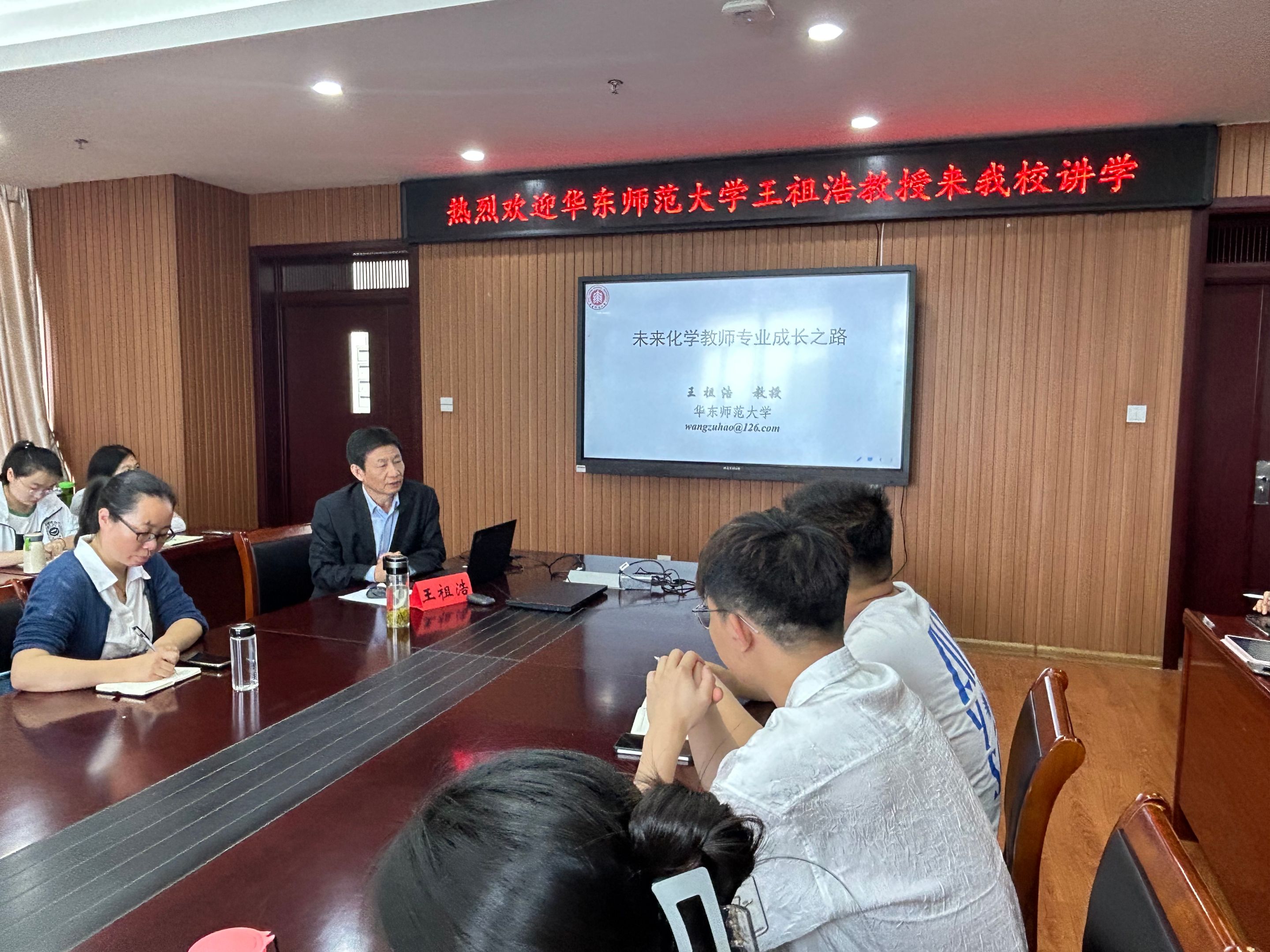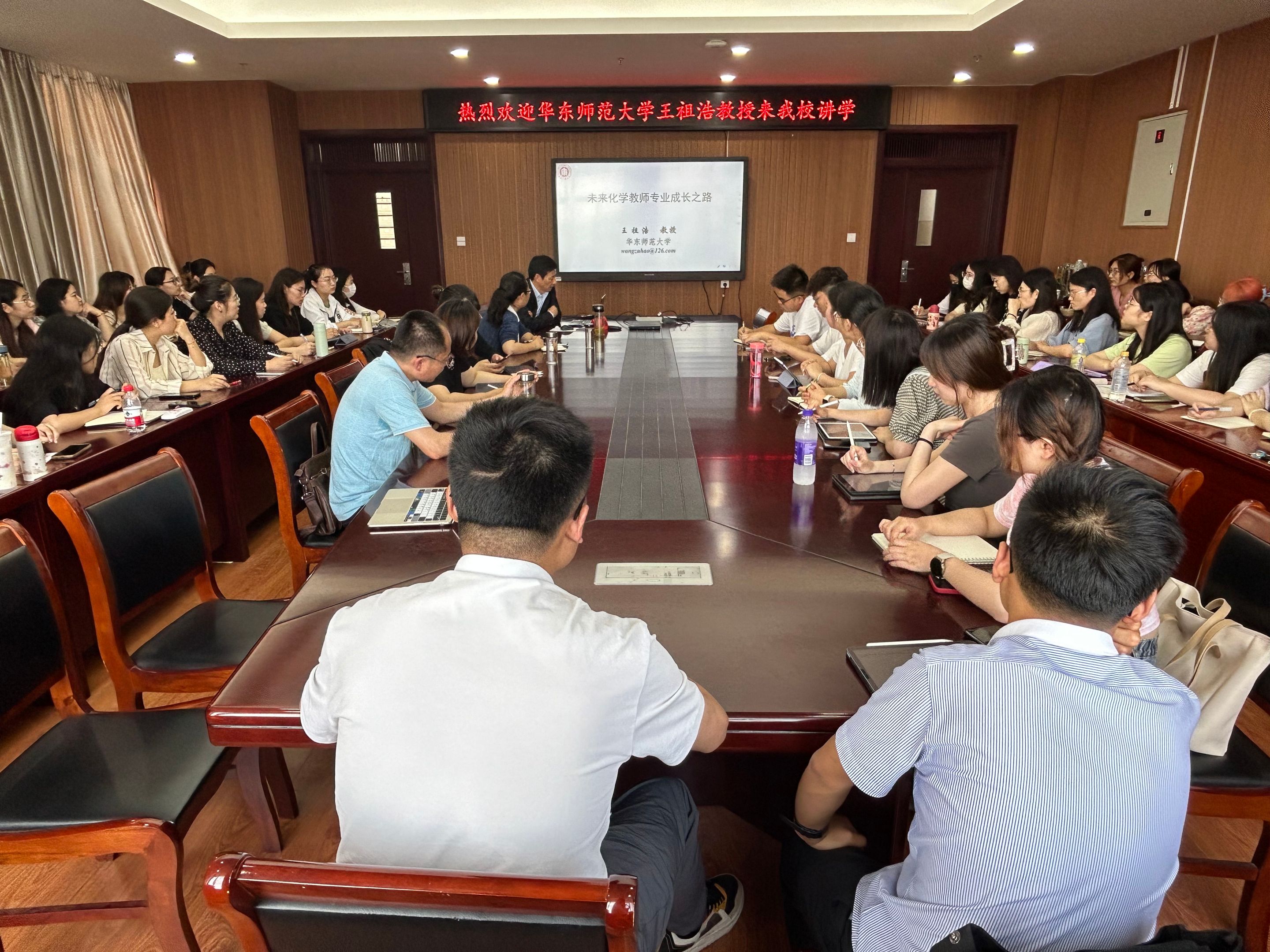 本网讯(英国正版365官方网站 田一鸣)5月20日下午,华东师范大学教师教育公司王祖浩教授应邀为化学教育专业研究生作专题报告,报告在花津校区礼勤楼702会议室举行,由英国正版365官方网站科研副经理周双六主持,化学教学论专业教师、全体化学教学论专业研究生参加了此次报告。