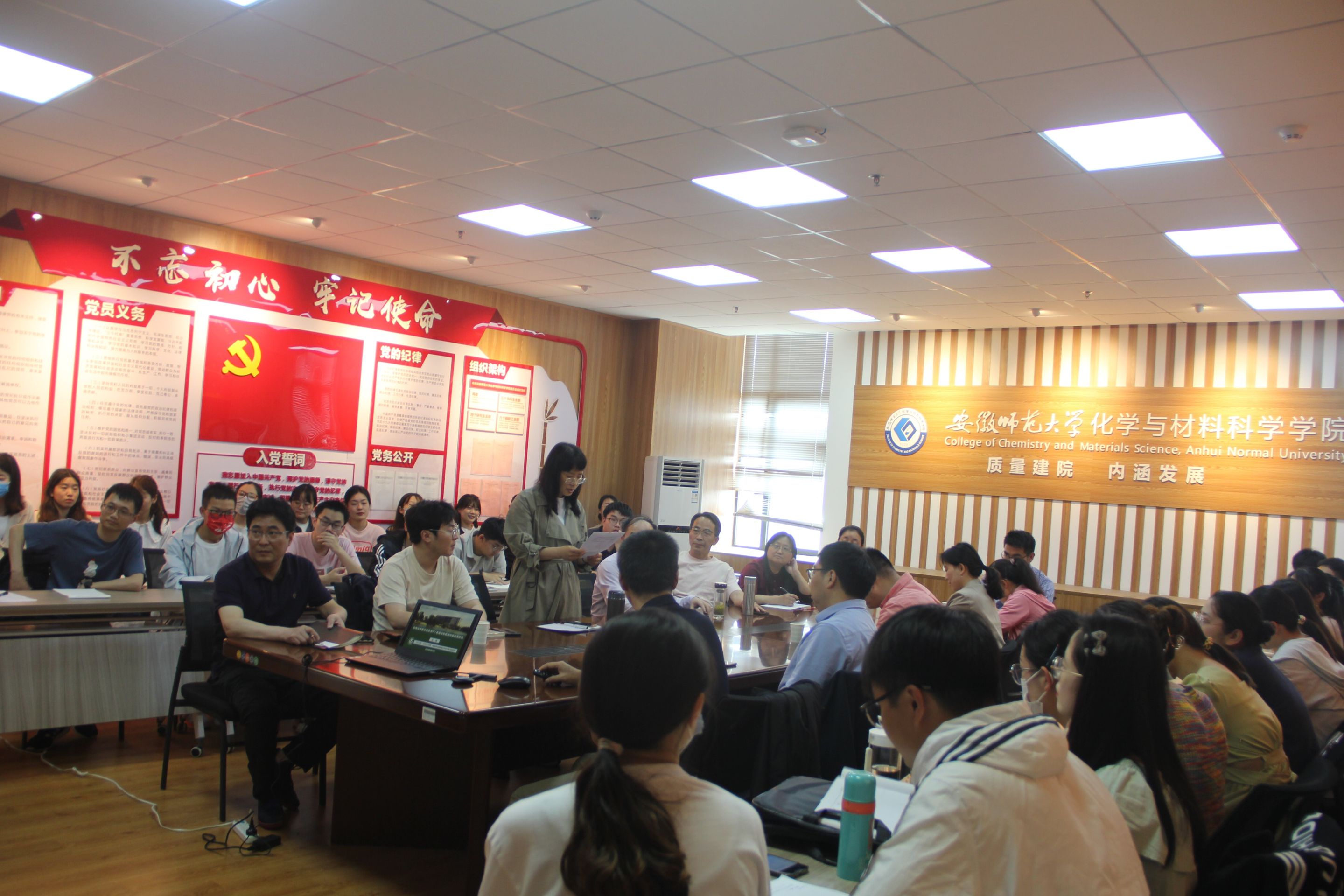 王坤教授作了题为“光电化学新方法在农产/食品分析检测中的应用研究”的学术报告。王教授首先简要介绍了农产品食品的研究背景,严峻的安全形势使科学研究迫在眉睫,环境的恶化使农产品食品出现严重的污染。接着介绍了该方向的研究思路包括设计制备功能纳米材料,技术手段和进行农产品食品的分析,以及光电化学方法的检测应用。随后王教授详细阐述了课题组研究的内容包括基于功能纳米材料的光电化学传感研究,点位选择可析光电化员工物传感器的构建及其应用研究,光助双极自供能传感研究,光电致变色可视化传感以及光电化学晶体管传感研究。最后做出总结和展望,国家大力支持发展可靠,快速,便携,精确的食品安全技术检测。会后,王教授与参加会议的师生展开了一系列的学术讨论与交流。