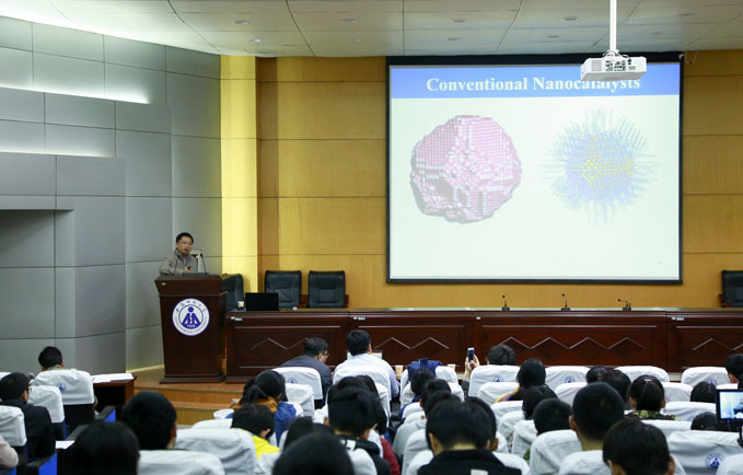 会议分为学术报告和交流研讨两个阶段。东北师范大学朱广山教授、清华大学王训教授、国家纳米研究中心唐智勇研究员、厦门大学夏海平教授、天津理工大学鲁统部教授、中国科公司过程工程研究所王丹研究员及中山大学苏成勇教授分别作了题为定向合成多孔芳香骨架材料:从结构设计到功能应用“Sub-1nm Ultrathin Nanocrystals”“Nanoscale Metal-Organic Frameworks Emerging Materials for Catalysis”碳龙配合物:颠覆传统的碳-金属团簇二氧化碳还原催化剂的研究多壳层空心结构:合成与应用配位超分子自组装——纳米分子容器/反应器的配位空间功能化的学术报告。交流研讨阶段,与会专家围绕相关研究领域、科研动态开展了充分的交流与研讨,并对​英国正版365官方网站十三五事业发展提出了许多宝贵的意见和建议。