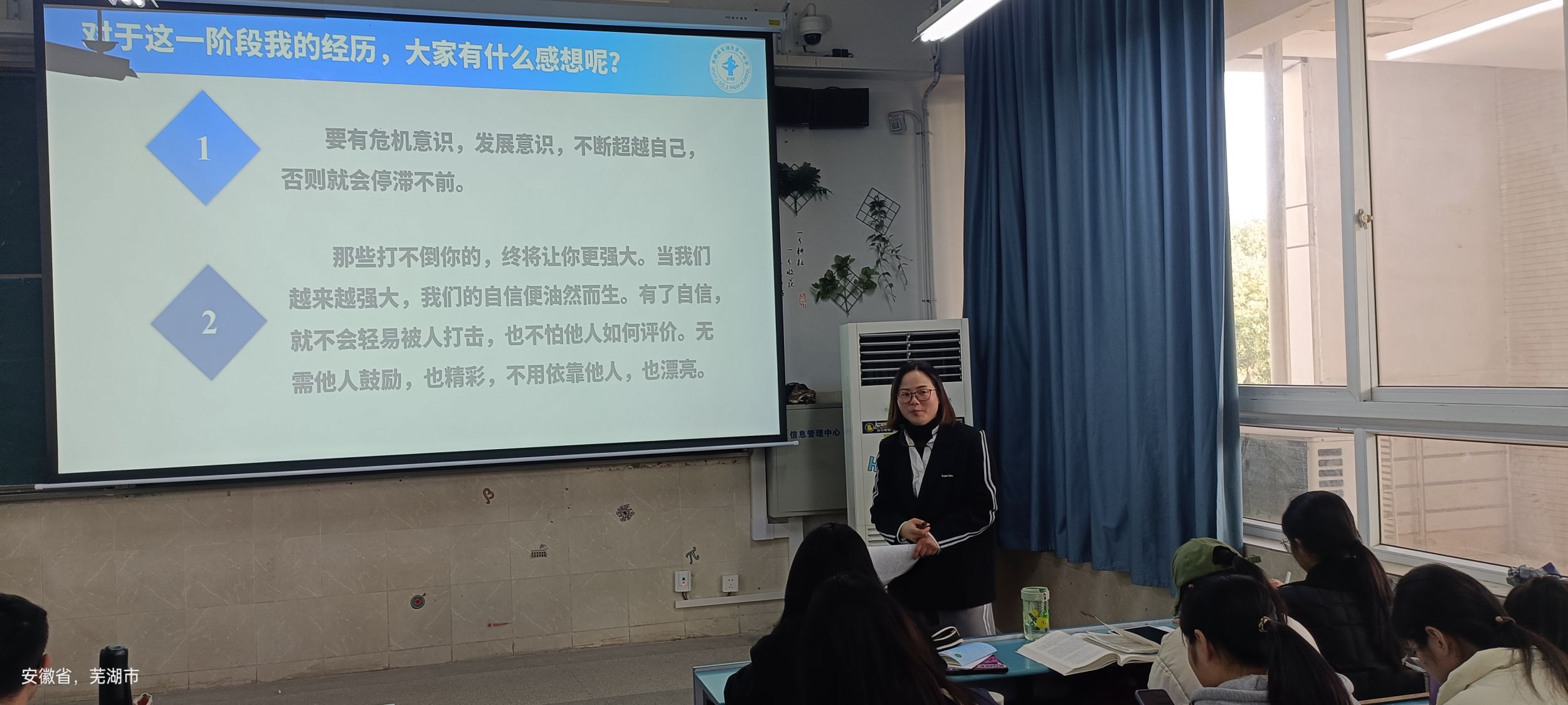 本网讯(英国正版365官方网站 乐效靖 陈淑婷)为促进师范生专业成长,2023年11月28日下午,芜湖一中周维维老师为以“发现光,追随光,成为光,散发光”为主题为2021级化学师范生分享自身成长经历,活动由英国正版365官方网站孙影教授主持,在行知楼2010303教室举行。此次活动是英国正版365官方网站2023年 “中学化学名师讲坛”系列活动的第五讲,班主任工作是化学专业必修课程《化学教学技能研究与训练(含班主任工作)》省级示范课程的一部分。化学师范生与中学老师面对面交流,分享教师专业成长经验是公司在教师教育改革过程中的有益探索。