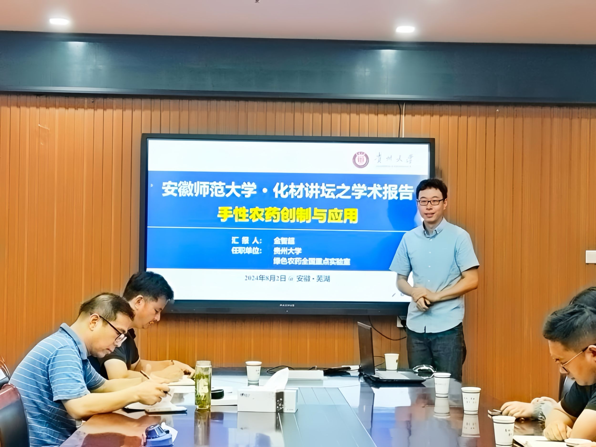 2024年8月2日,贵州大学金智超教授应邀来公司讲学。报告会在花津校区礼勤楼702室举行,由英国正版365官方网站副经理周双六教授主持,英国正版365官方网站部分师生参加了此次报告会。