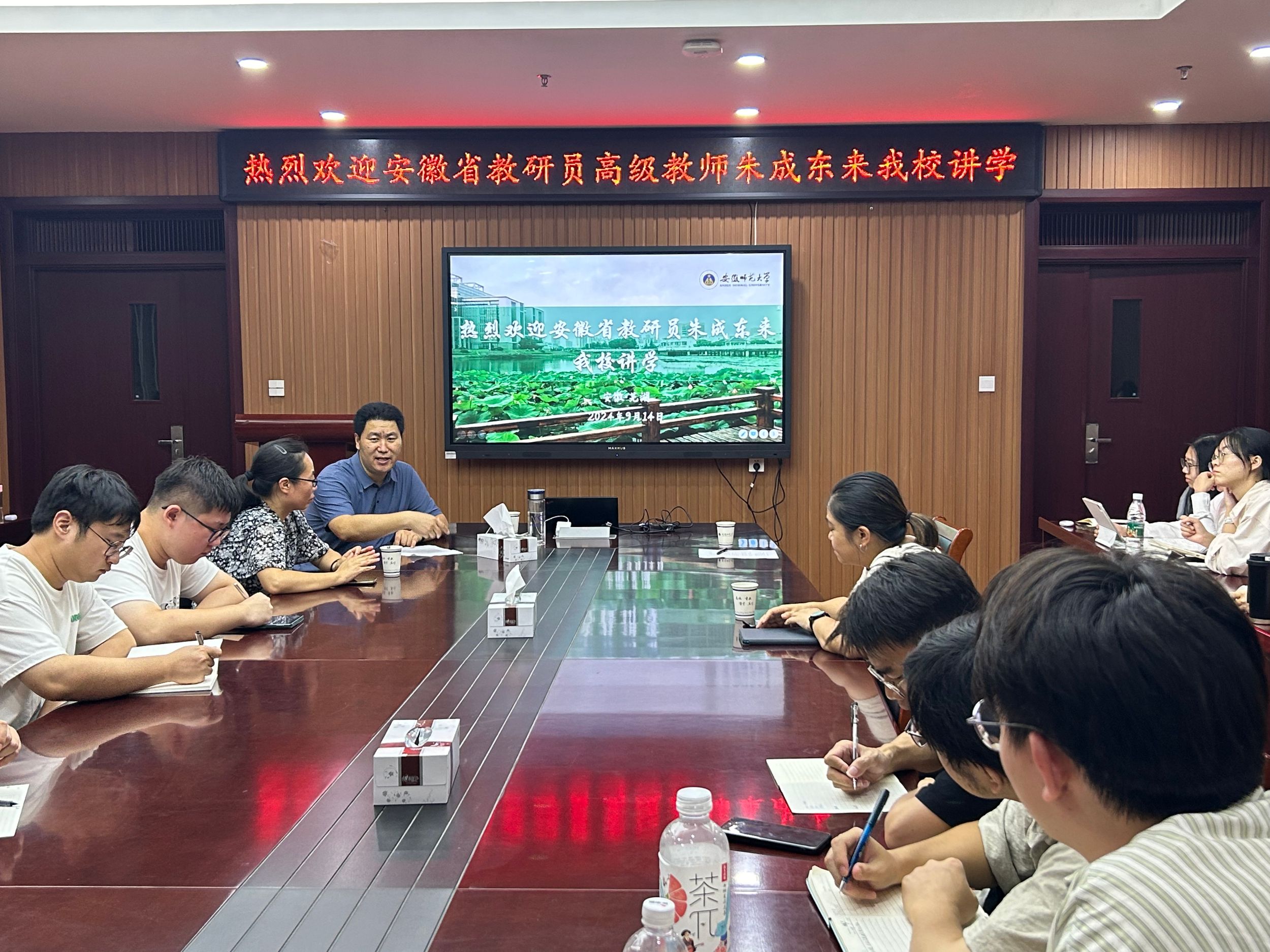 为激发公司化学教育专业研究生的学术热情与创新意识,9月14日,宣城市教研员、正高级特级教师徐泓,安徽省教育科学研究院化学教研员、高级教师朱成东应邀来公司交流,交流活动在花津校区礼勤楼702室举行,英国正版365官方网站副经理陈郑老师主持。化学教学论专业教师、全体化学教育专业研究生参加了本次活动。此次活动是“科学教育改革前沿”的首次尝试,活动邀请专家学者与员工分享学科研究前沿,为员工答疑解惑,努力为化学教育专业研究生搭建一个前沿、开放、多元的学术对话空间,助力青年学子乘风破浪、勇攀高峰。