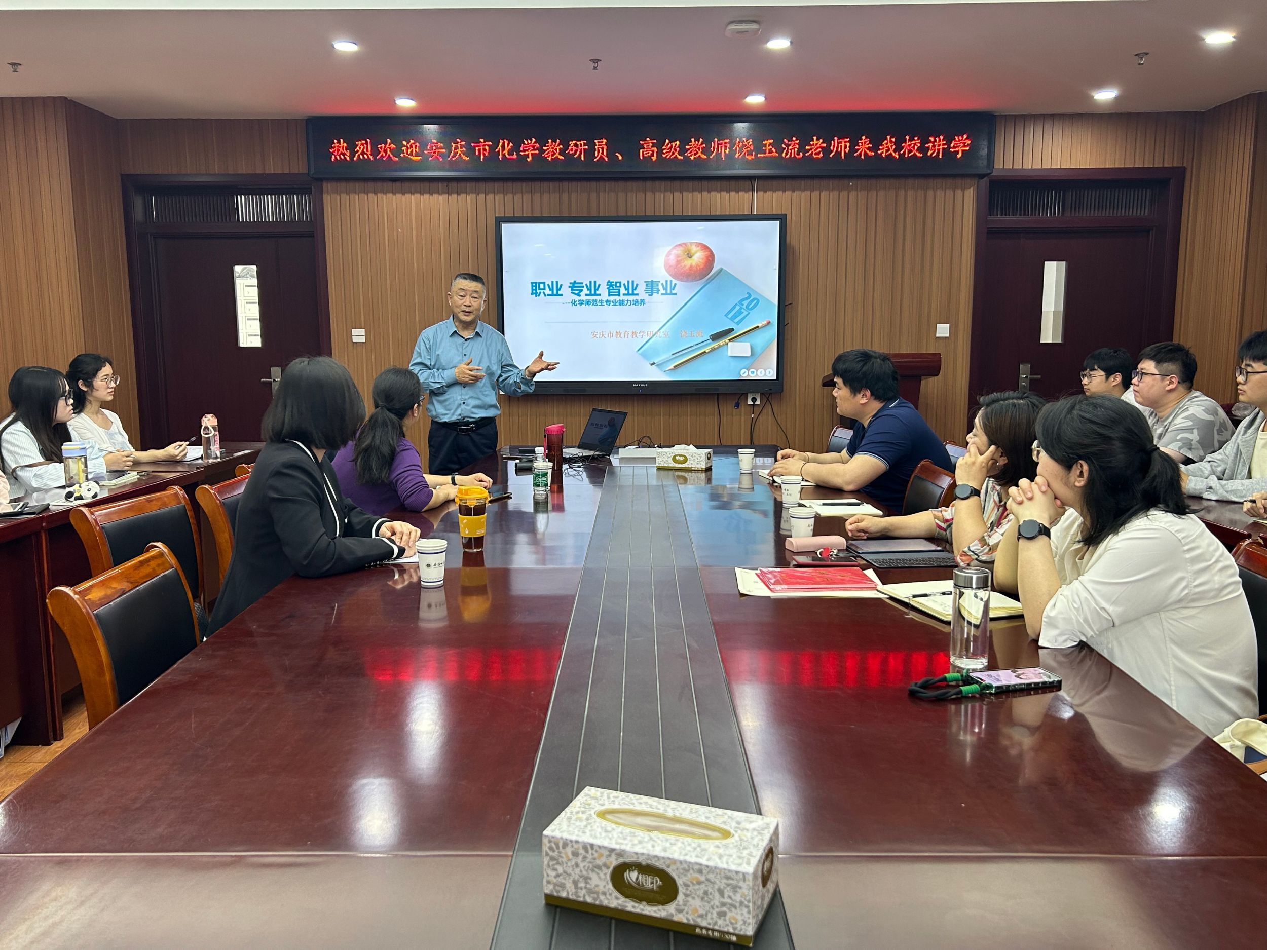 (英国正版365官方网站 黄子彤)4月9日下午,安庆市化学教研员、高级教师饶玉流应邀来公司讲学。报告会在花津校区礼勤楼702会议室举行,由英国正版365官方网站孙影教授主持,化学教学论教师、化学教育专业研究生参加此次报告。