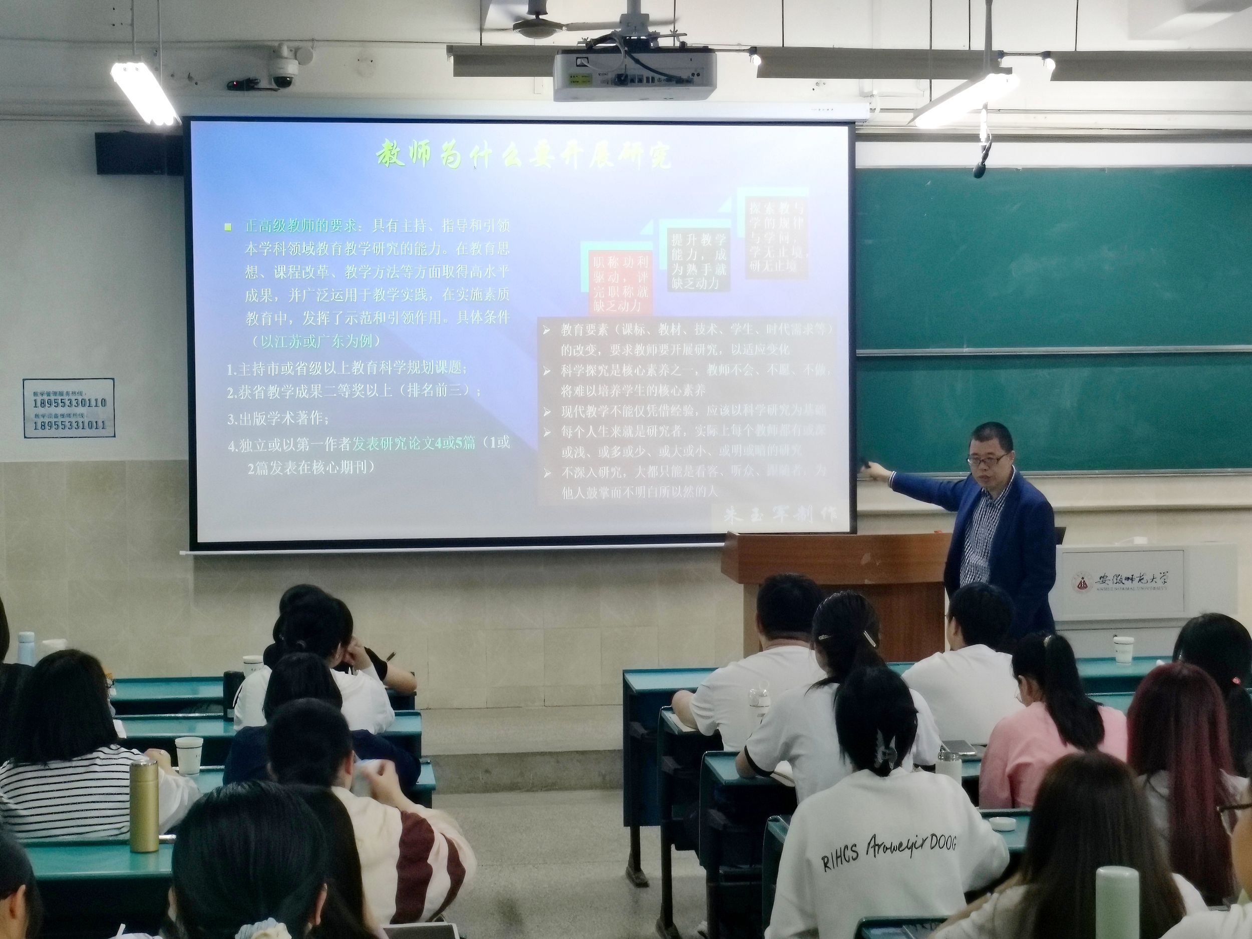 (英国正版365官方网站 黄子彤)5月15日、16日上午,核心期刊《化学教育》专职副主编、编辑部主任朱玉军来公司开展系列专题讲座,讲座主题围绕课例研究、实证研究及论文写作。本次讲座由英国正版365官方网站孙影教授主持,在花津校区1号楼2010101顺利举行。化学教学论教师、化学教育专业研究生、生物教育专业研究生、优师计划师范生及芜湖一线教师参加此次报告。