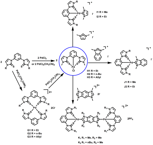 Wei-Guo Jia, Li-Li Gao, Zhi-Bao Wang, Li-Ying Sun, and Ying-Feng Han, Synthesis, Characterization and Catalytic Activities of Palladium Complexes with Phenylene-bridged Bis(thione) Ligands, Organometallics, 2019, 38, 1946-1954