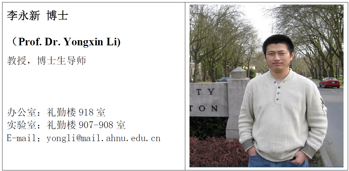 B.S. in Chemistry Education, Anhui Normal University, July 1995, Wuhu, China.